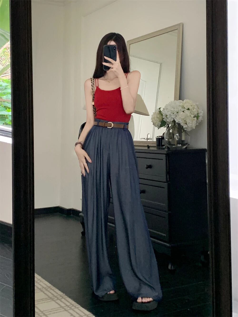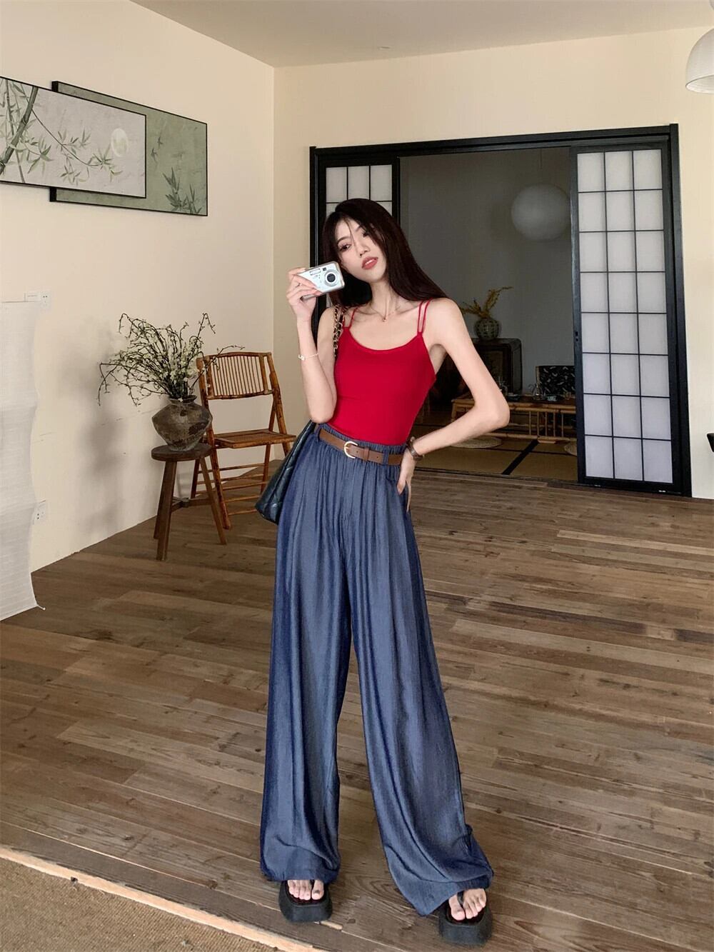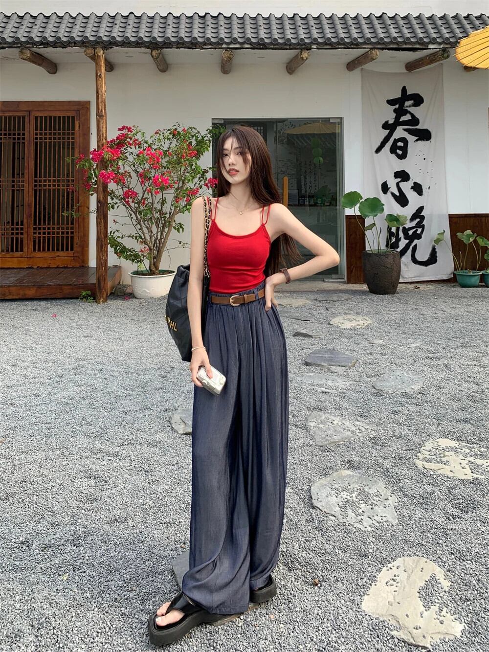 送料無料 Jielur ツーピース夏スリムキャミソール女性無地背中の開いたセクシーな女性のキャミソールレトロウエストルーズパンツ サマー 夏物 ソリッドカラー AE12188787866858143220