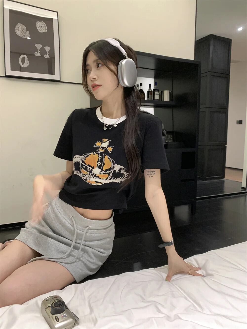 送料無料 Jielur 夏コントラストカラースリム女性の Tシャツシンプルな Tシャツ女性黒アプリコットシックなセクシーなトップ ブラック サマー 夏物 AE12188787891464296549