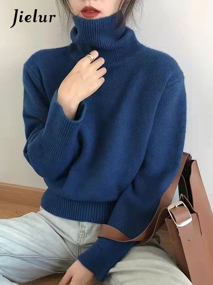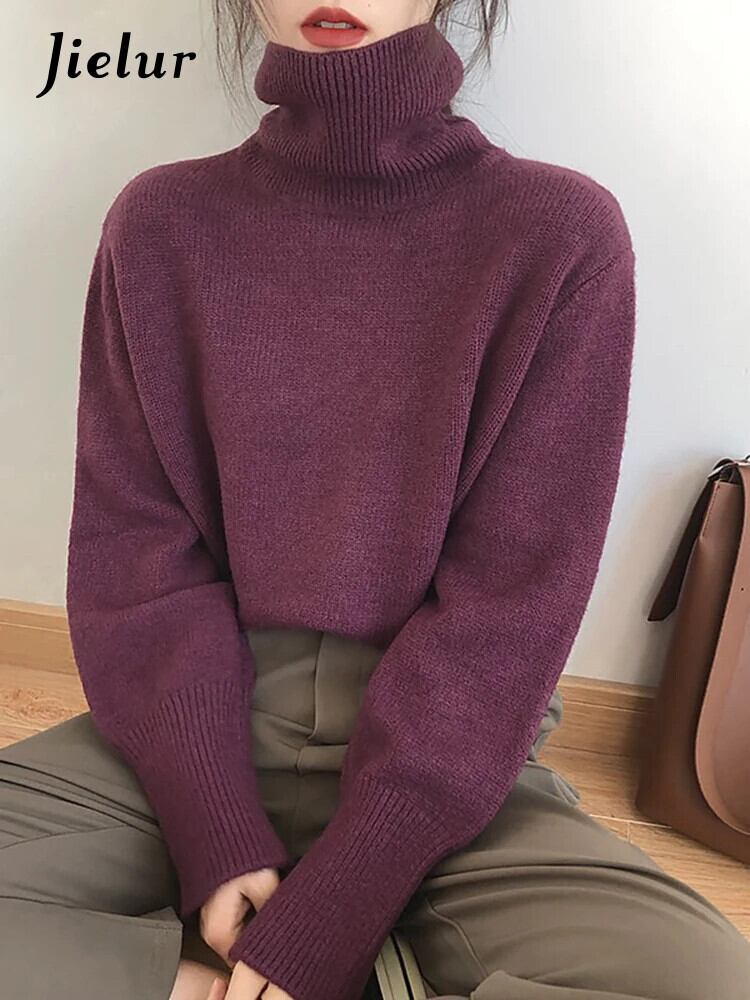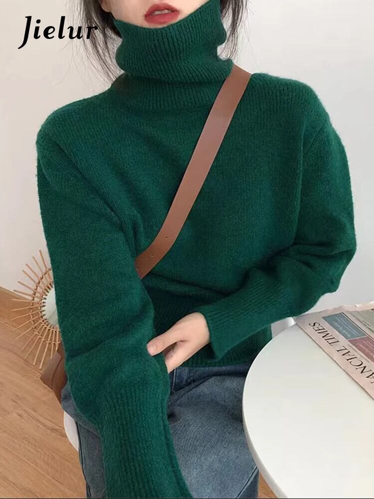 送料無料 Jielur Ins タートルネックルーズニットセータープルオーバー無地スリム 8 色女性プルオーバーグリーン ソリッドカラー AE12188787815729559147