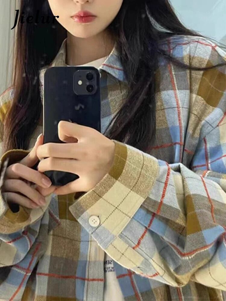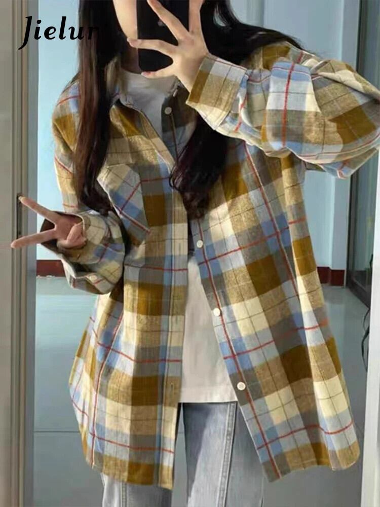 送料無料 Jielur 春シンプルなレトロスリム女性シャツストリートルーズ女性シャツシックなベーシック長袖トップ ロング スプリング 春物 AE12188787880408521049