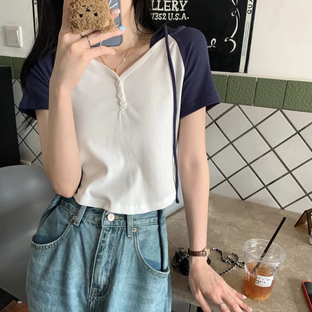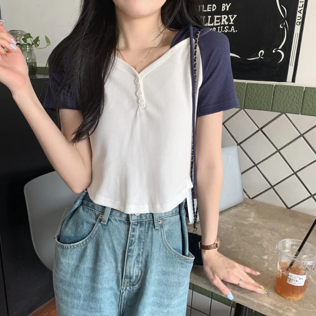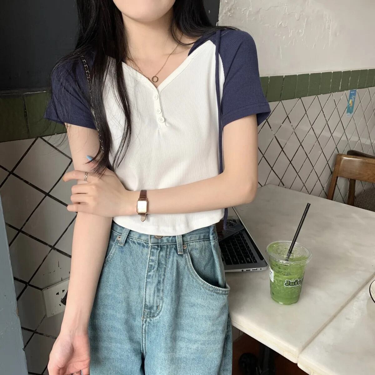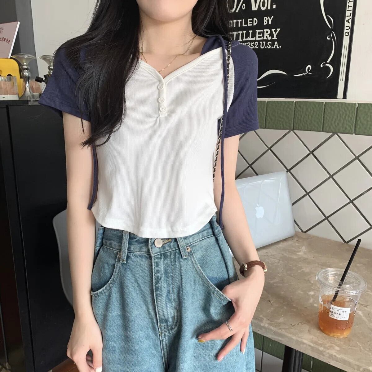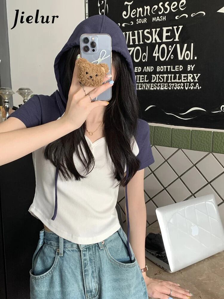 送料無料 Jielur 夏コントラストカラースリム女性の Tシャツルーズ Tシャツ女性白アプリコットストリートトップ ホワイト サマー 夏物 AE12188787818816670103