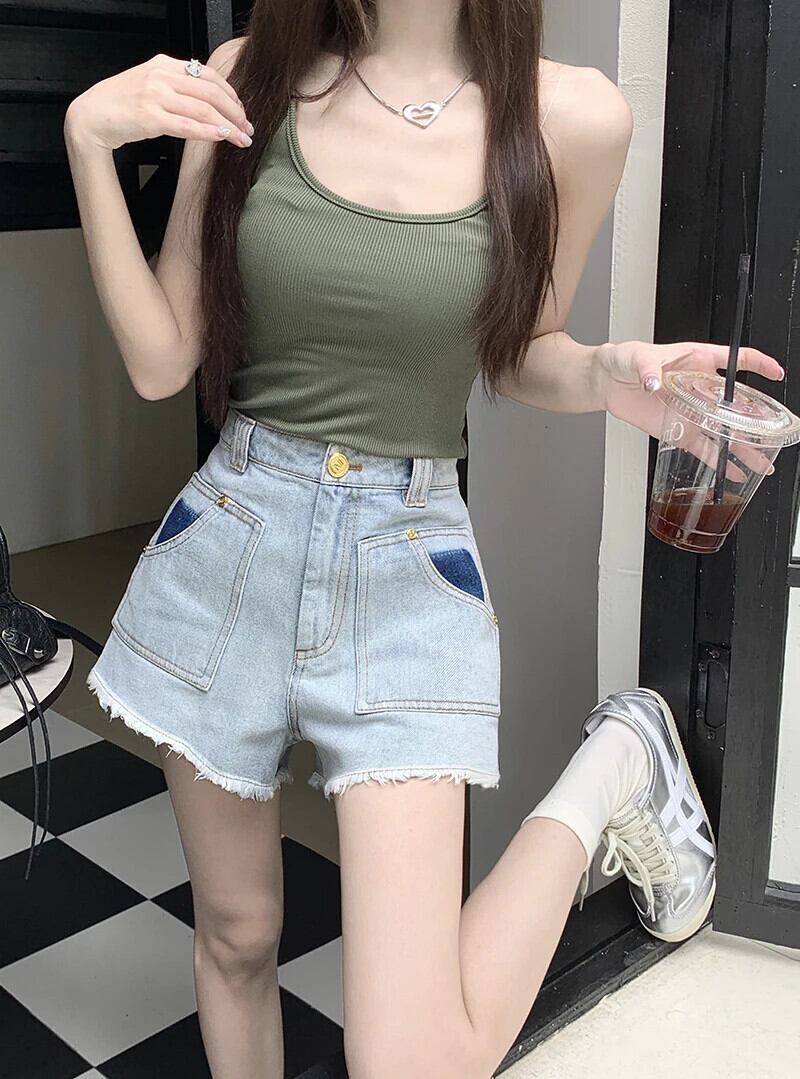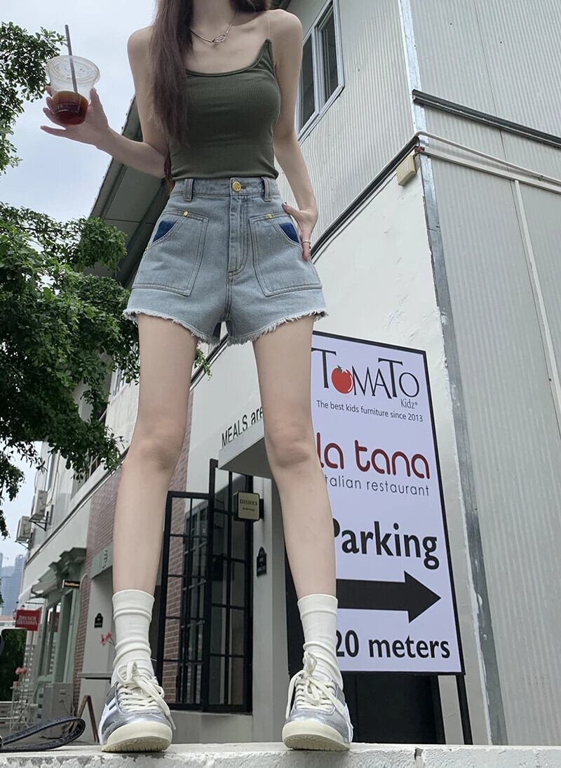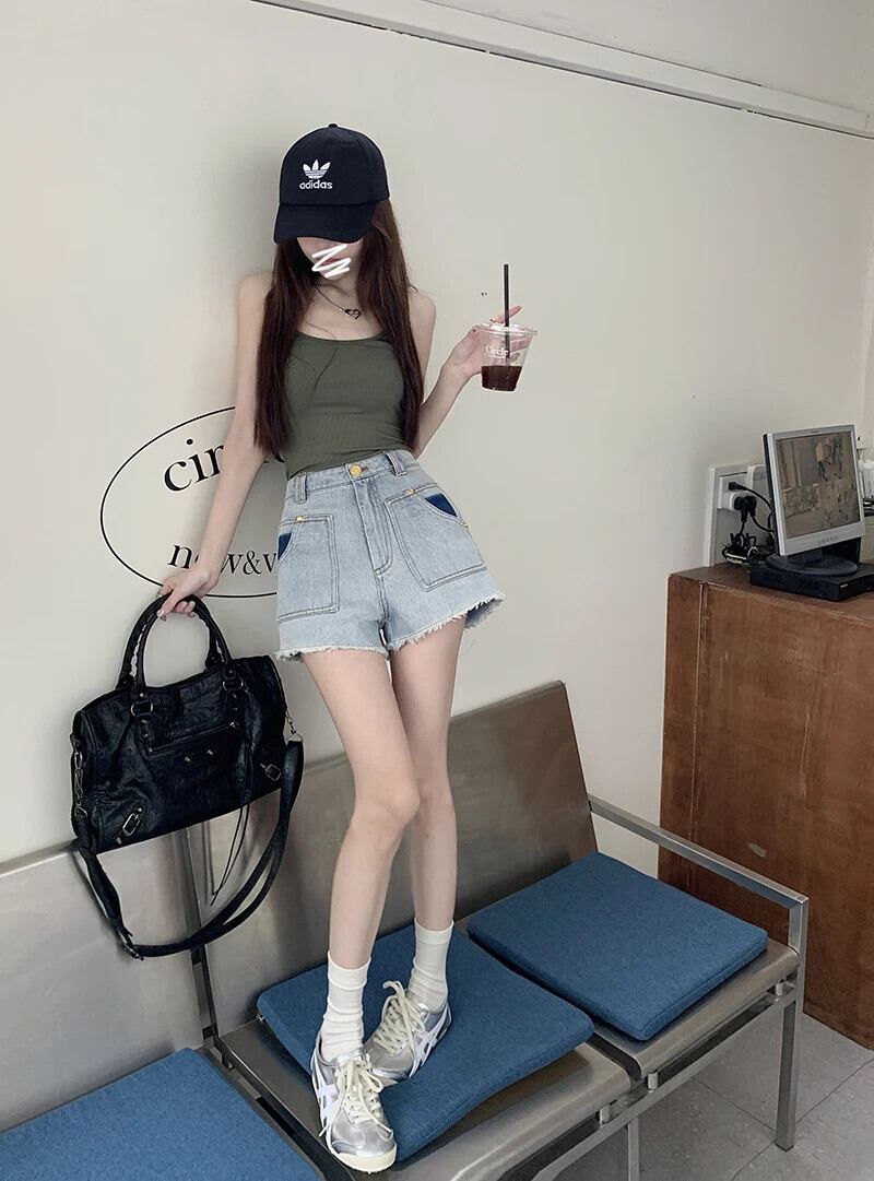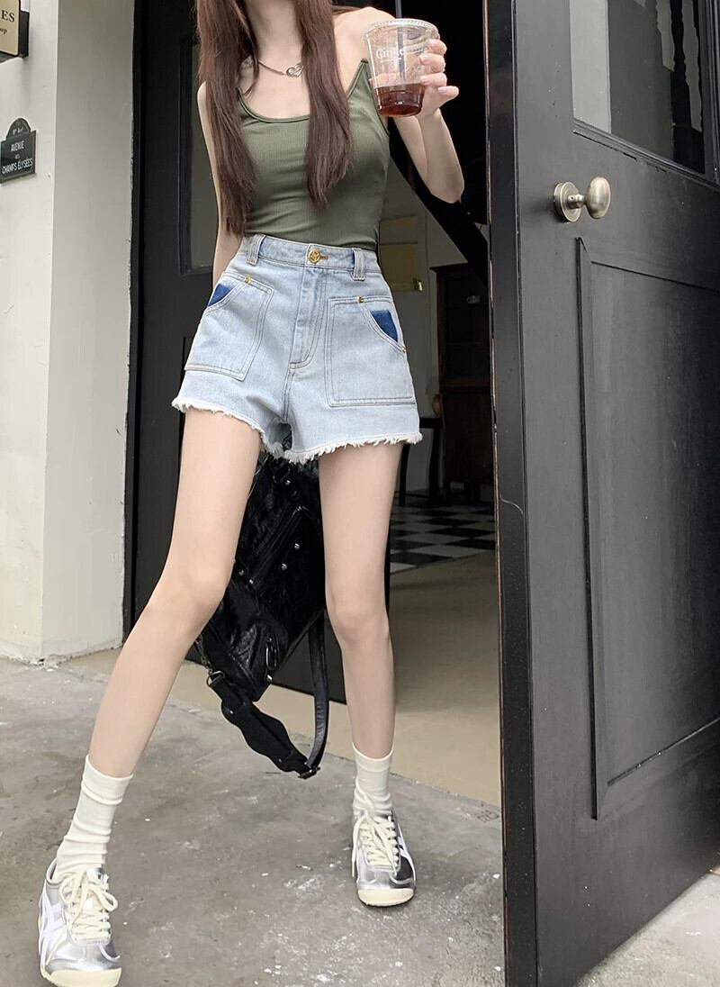 送料無料 Jielur 夏ウエストスリムデニムショーツ女性シックなルーズコントラストカラーの女性のショーツライトブルーストリートショーツ サマー 夏物 ブルマー AE1218878787677887692