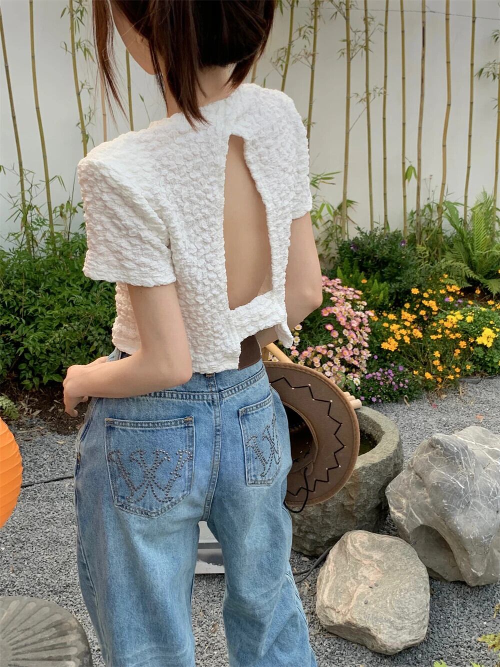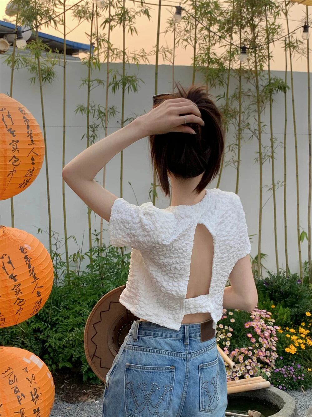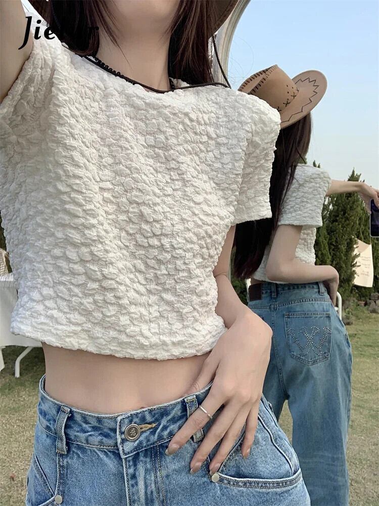 送料無料 Jielur 夏背中の開いたソリッドカラーの女性の Tシャツルーズシンプルな Tシャツ女性甘い黒、白のベーシックトップ ホワイト ブラック 大人ガーリー スウィート キュート カジュアル サマー 夏物 AE12188787826811354660