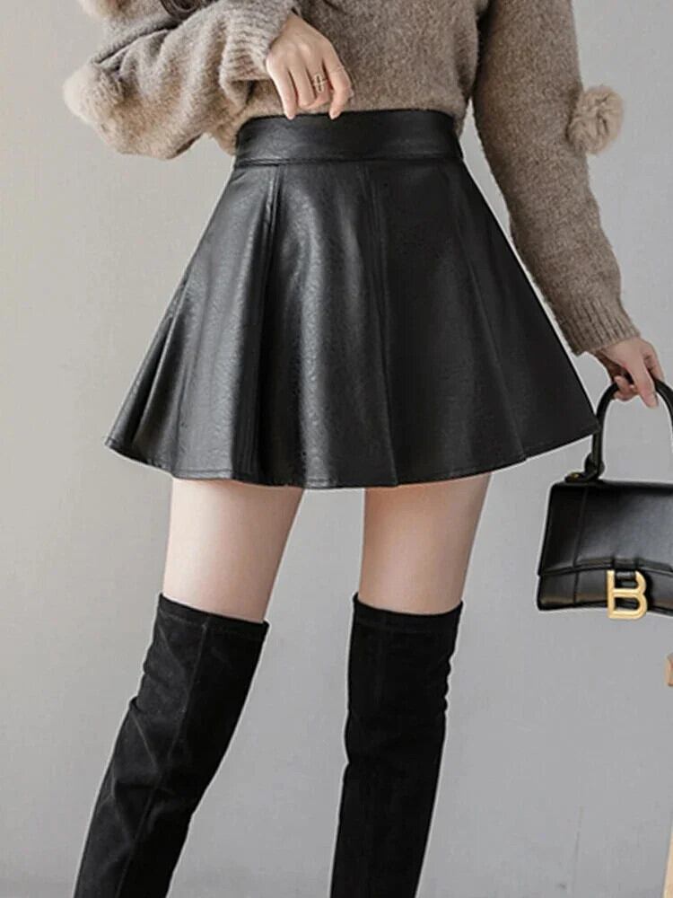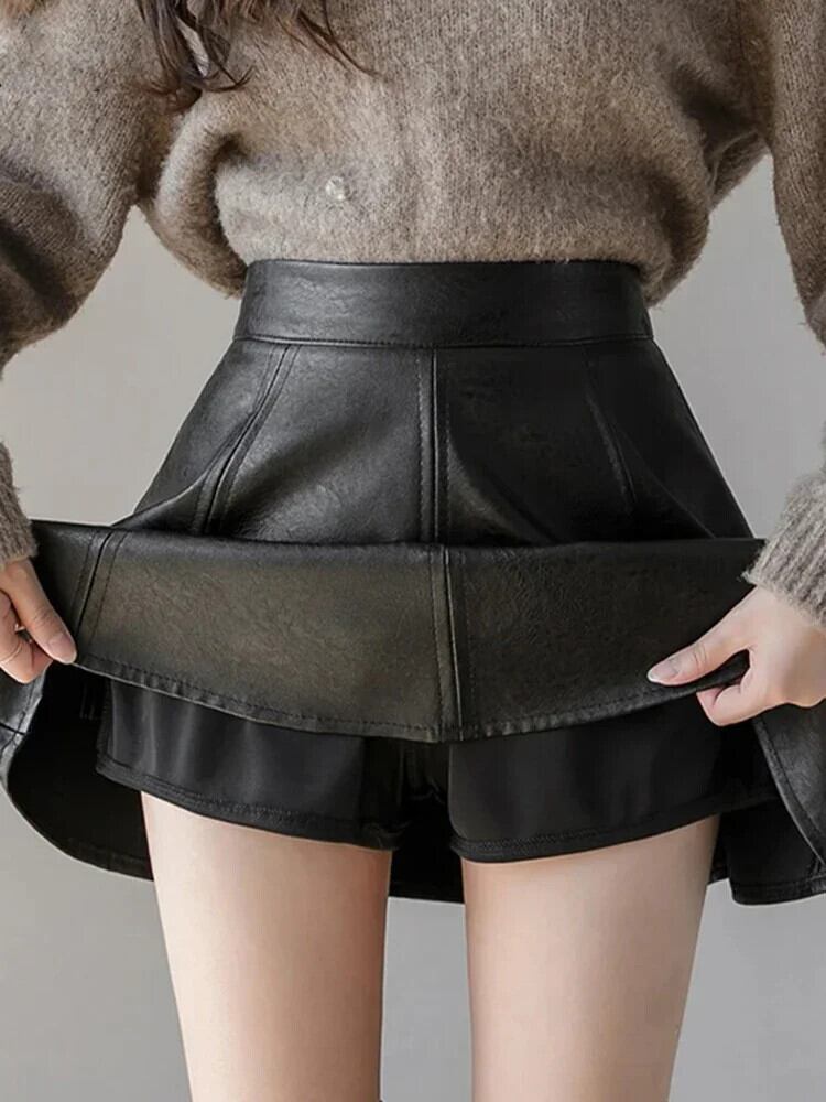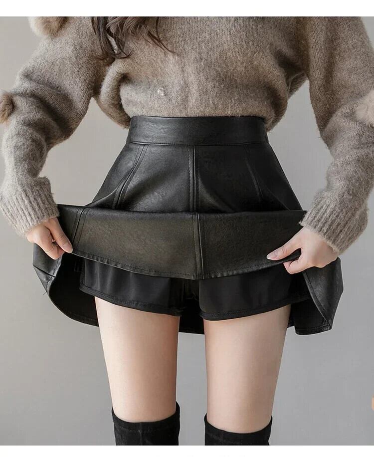 送料無料 秋の女性のウエストスリムフィット Uniquepered ミニレザー Sk ソリッドカラー Clic レトロ PU Ple スカート冬 レッド オータム 秋物 ウィンター 冬物 AE12188787852031805174