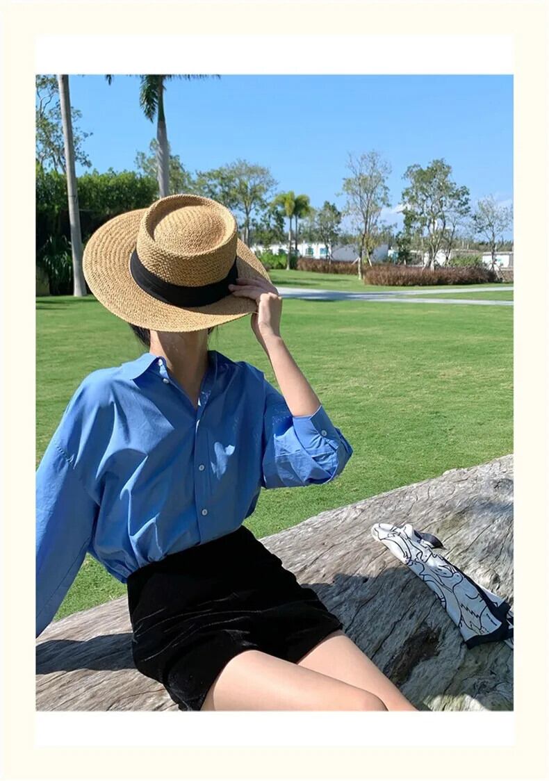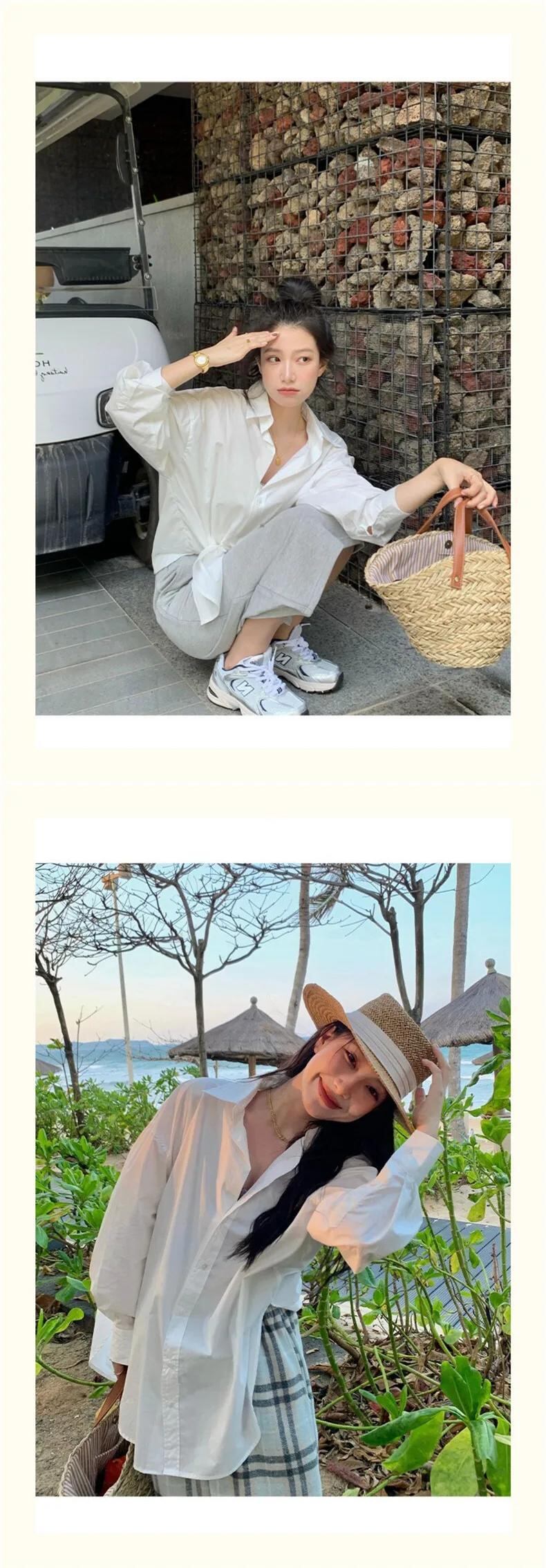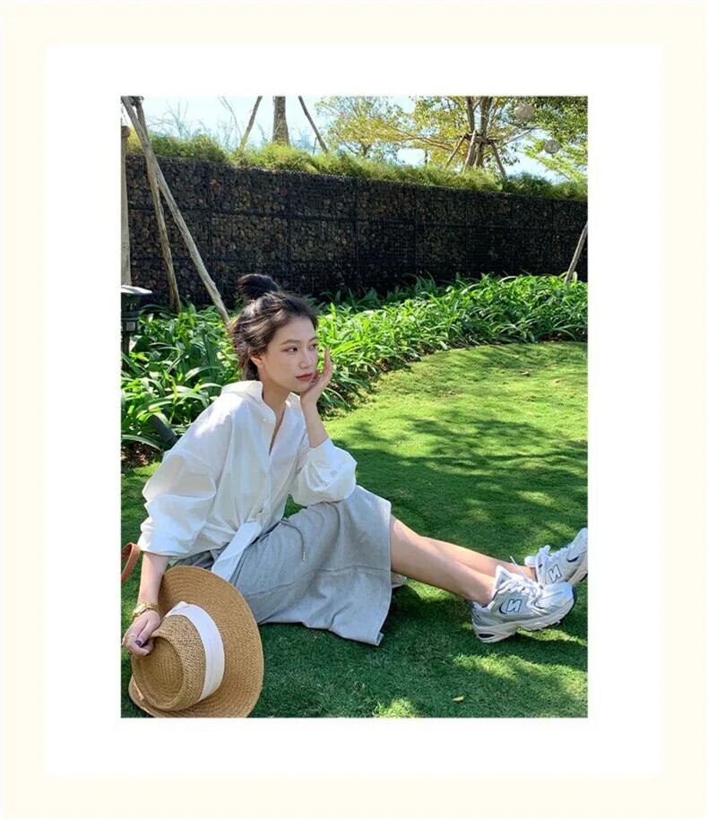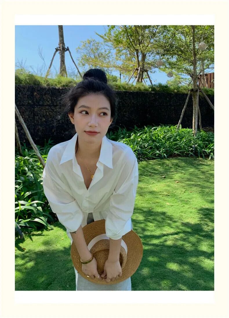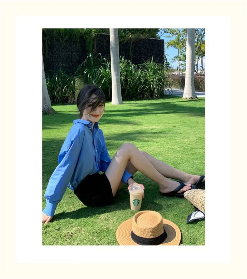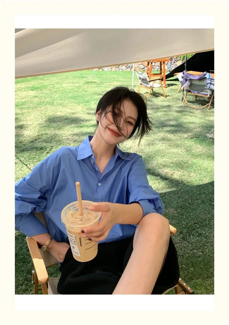 送料無料 Jielur 春無地スリムルーズ女性シャツストリート女性シャツ青白シンプルなベーシックシックなトップ ホワイト ブルー スプリング 春物 ソリッドカラー AE12188787848852388580