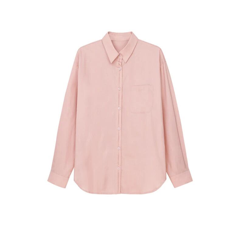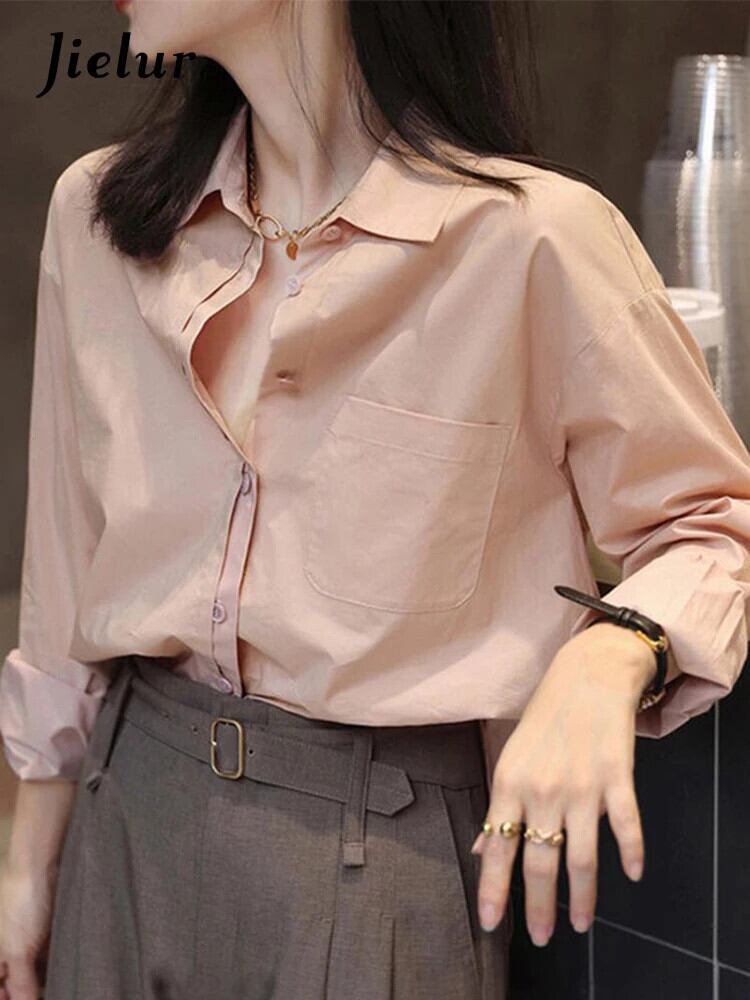 送料無料 Jielur 春フレンチソリッドカラーシックな女性シャツシンプルなベーシックスリムオフィスウーマンシャツルーズ長袖トップ ロング スプリング 春物 会社 学校 通勤や通学にも AE12188787847980138080
