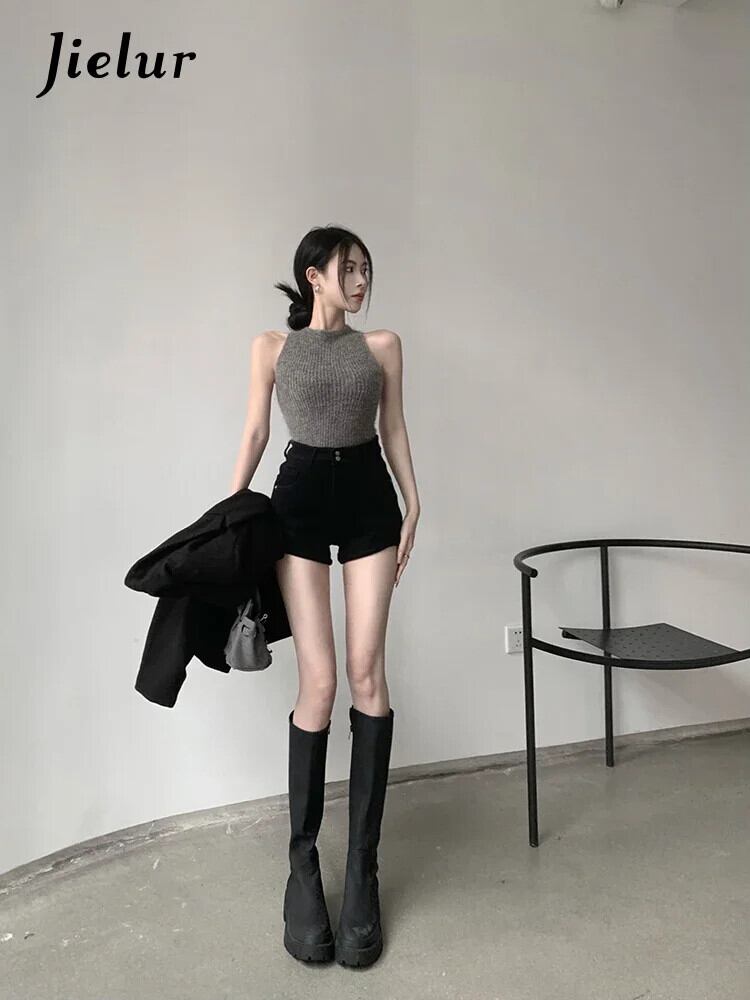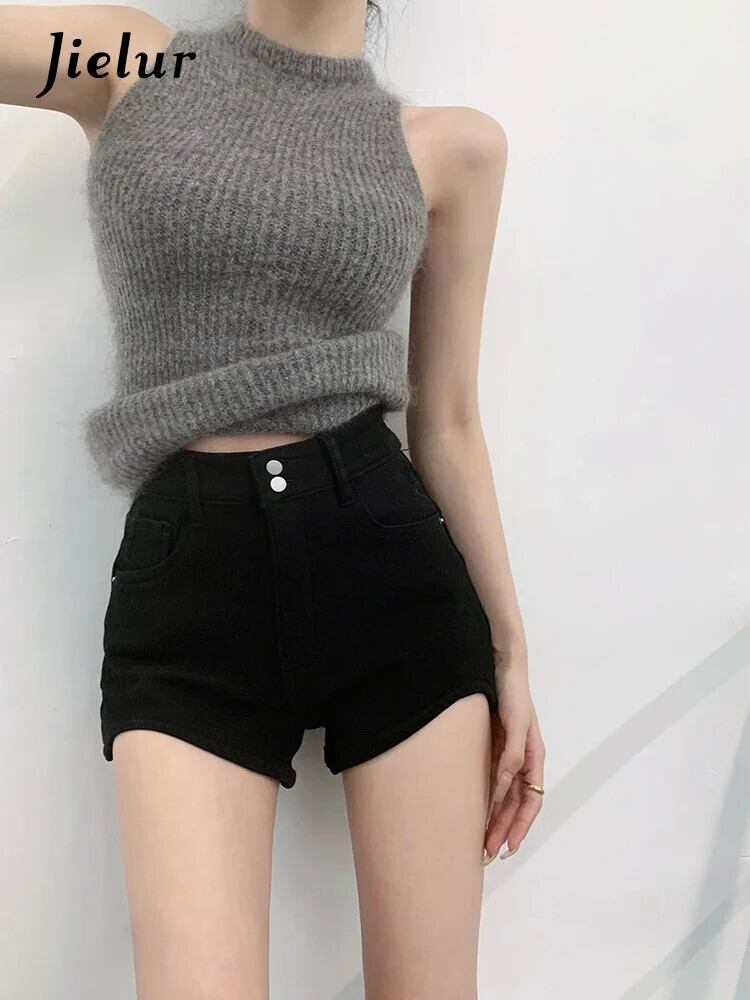 送料無料 Jielur セクシーガールストレートシックデニムショートパンツ春ウエストカーキブラックジーンズ女性スタイルワイドレッグショートジーンズ スプリング 春物 ショーツ ブルマー AE12188787881840767726