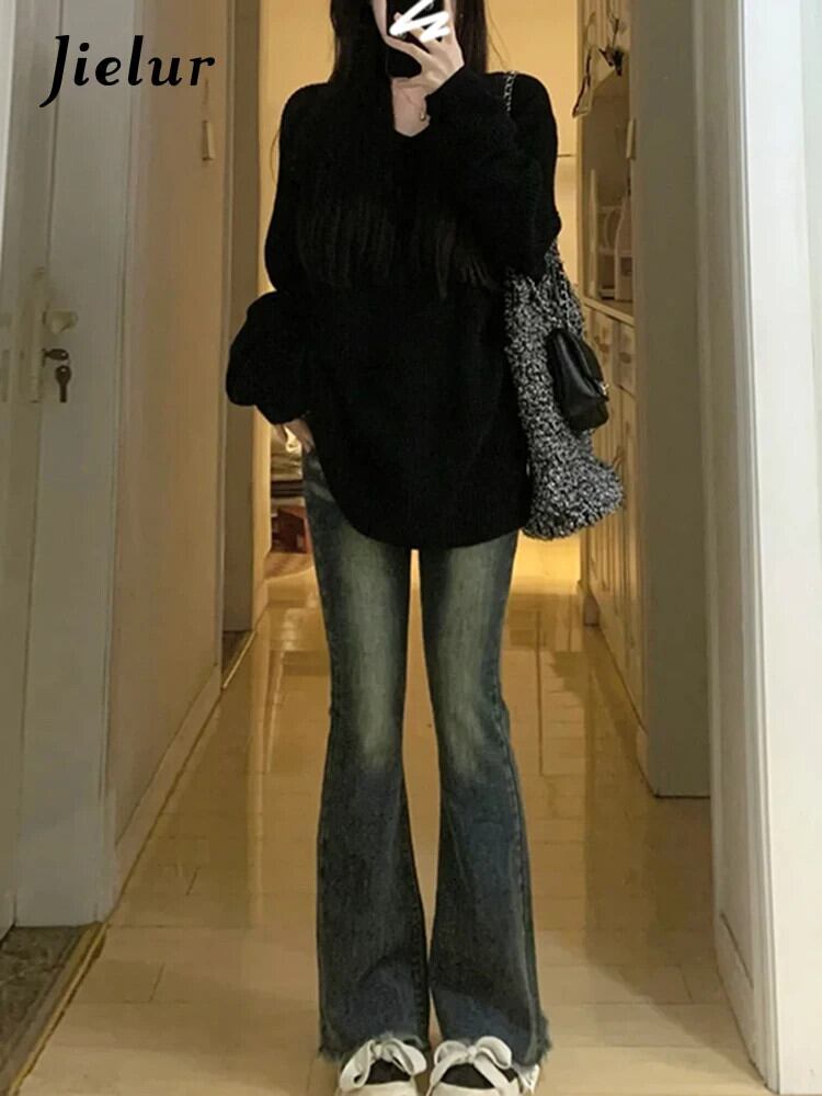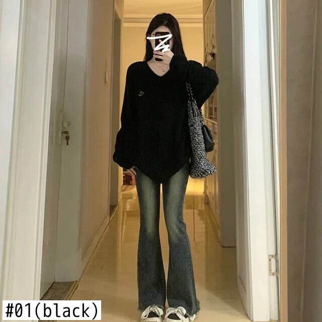 送料無料 Jielur 秋ソリッドルース Chicly 女性プルオーバー甘いプルオーバー女性黒 V ネックニットセーター ブラック 大人ガーリー スウィート キュート カジュアル オータム 秋物 Vネック ソリッドカラー AE1218878788282111743