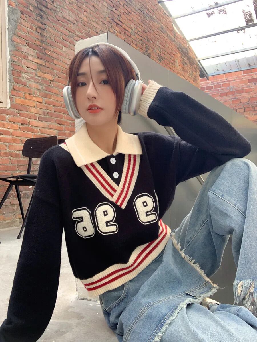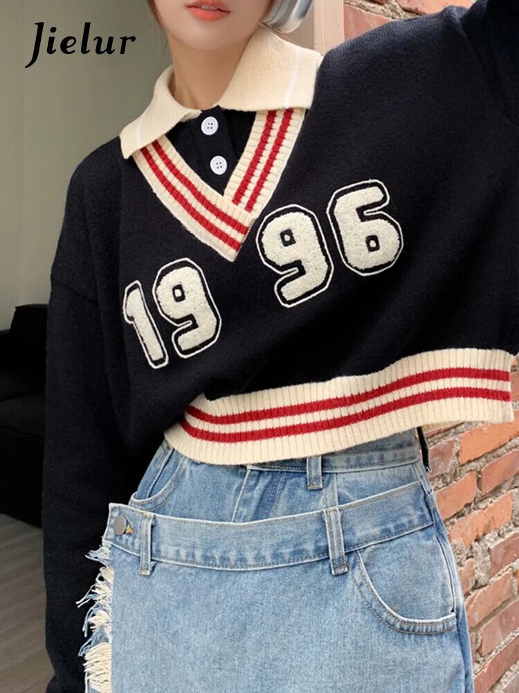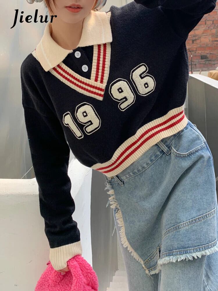 送料無料 Jielur 秋甘い女性ニットプルオーバー女性スリムストリートプルオーバー女性シックなネイビーブルーのポロネックカーディガン 大人ガーリー スウィート キュート カジュアル オータム 秋物 AE12188787887257124664