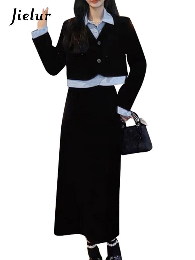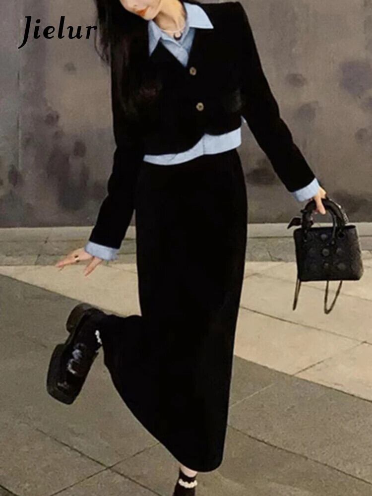 送料無料 Jielur ツーピース秋スリム甘いスカート女性ルーズ Baisc スカートストリート無地シックなトップ女性 大人ガーリー スウィート キュート カジュアル オータム 秋物 ソリッドカラー AE12188787842667102903