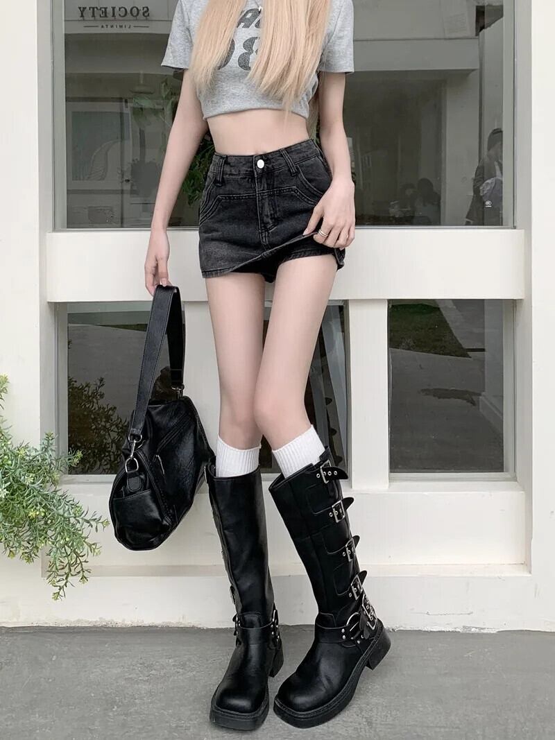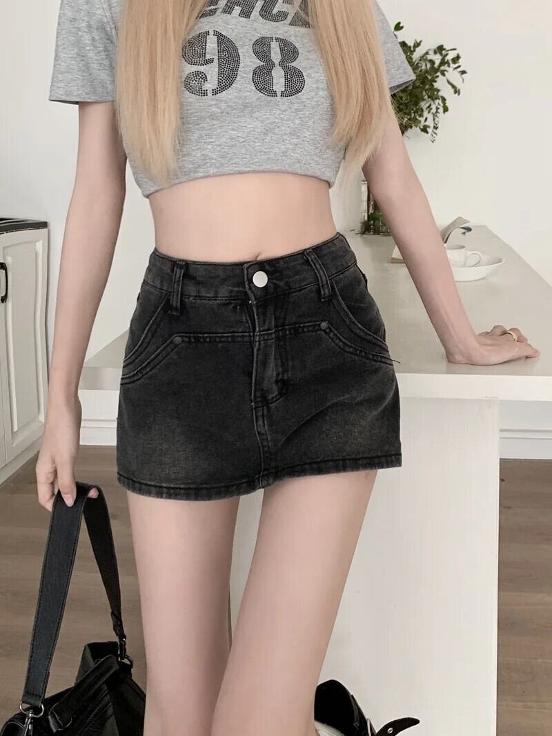 送料無料 Jielur アメリカンヴィンテージデニム女性のショーツ夏のセクシーなスリムタイトなヒップ女性ショーツウエストブラックグレーシンプルなショーツ サマー 夏物 ブルマー ビンテージ AE12188787881091833199