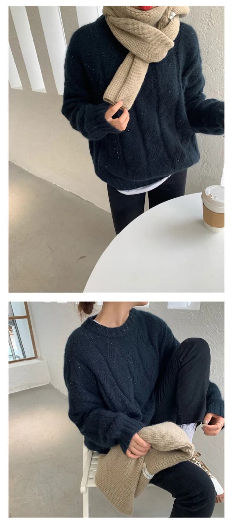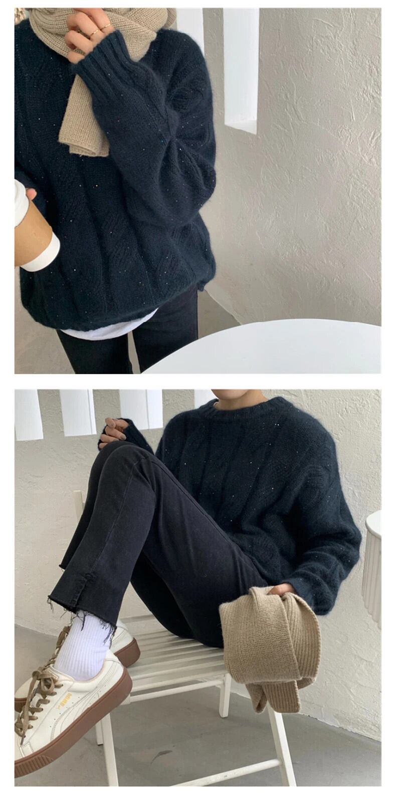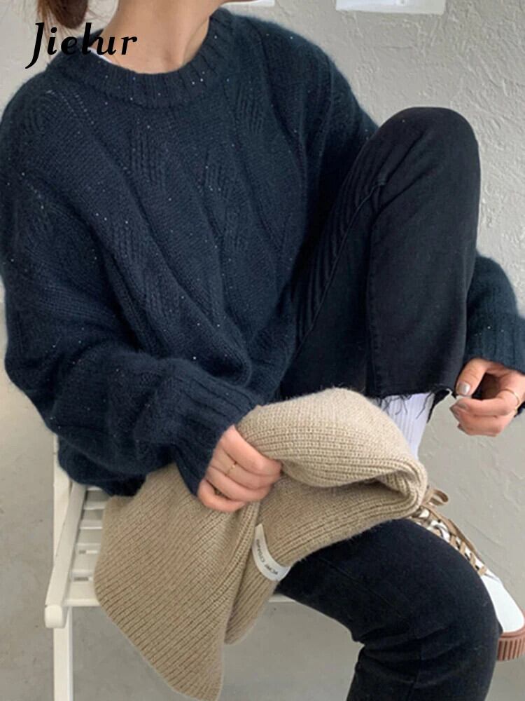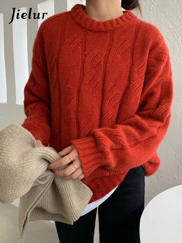 送料無料 Jielur Clic O ネックルーズセーターニット女性プルオーバー秋厚く暖かい無地の基本的なシンプルなプルオーバー オータム 秋物 Oネック ソリッドカラー AE12188787856452252216