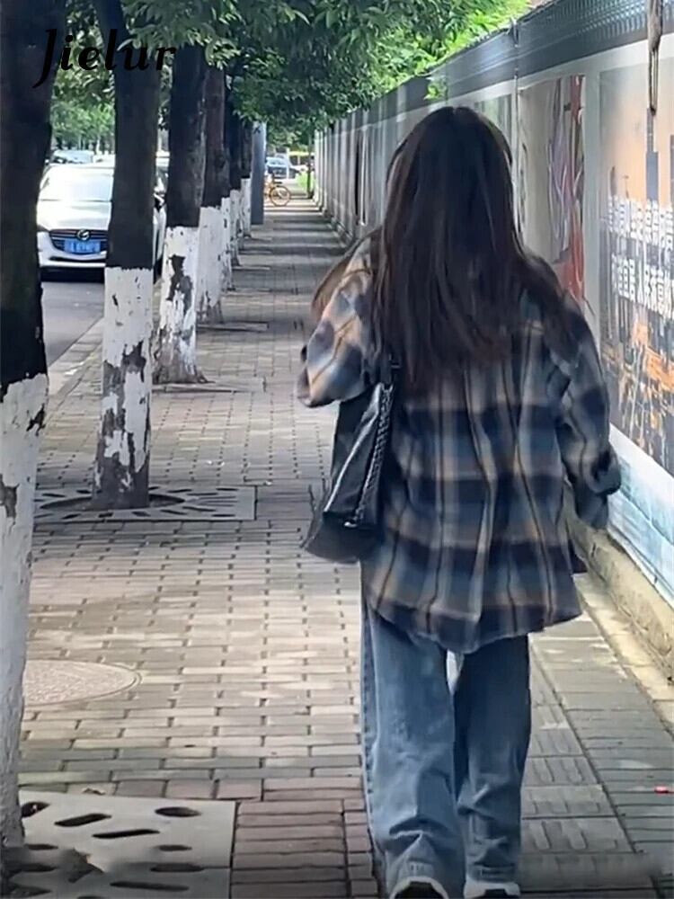 送料無料 Jielur ソリッドカラーのアメリカ人女性シャツルーズストリート女性シャツ春スリムシックな長袖トップ ロング スプリング 春物 AE12188787830849471934