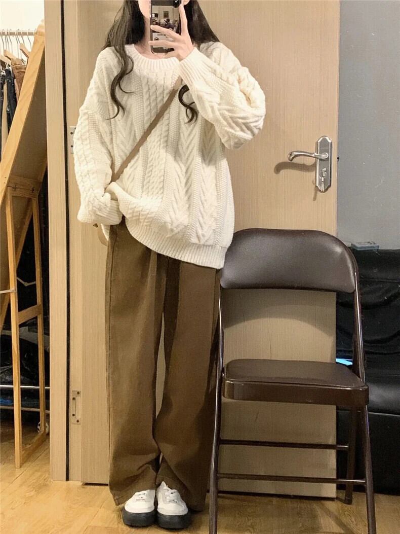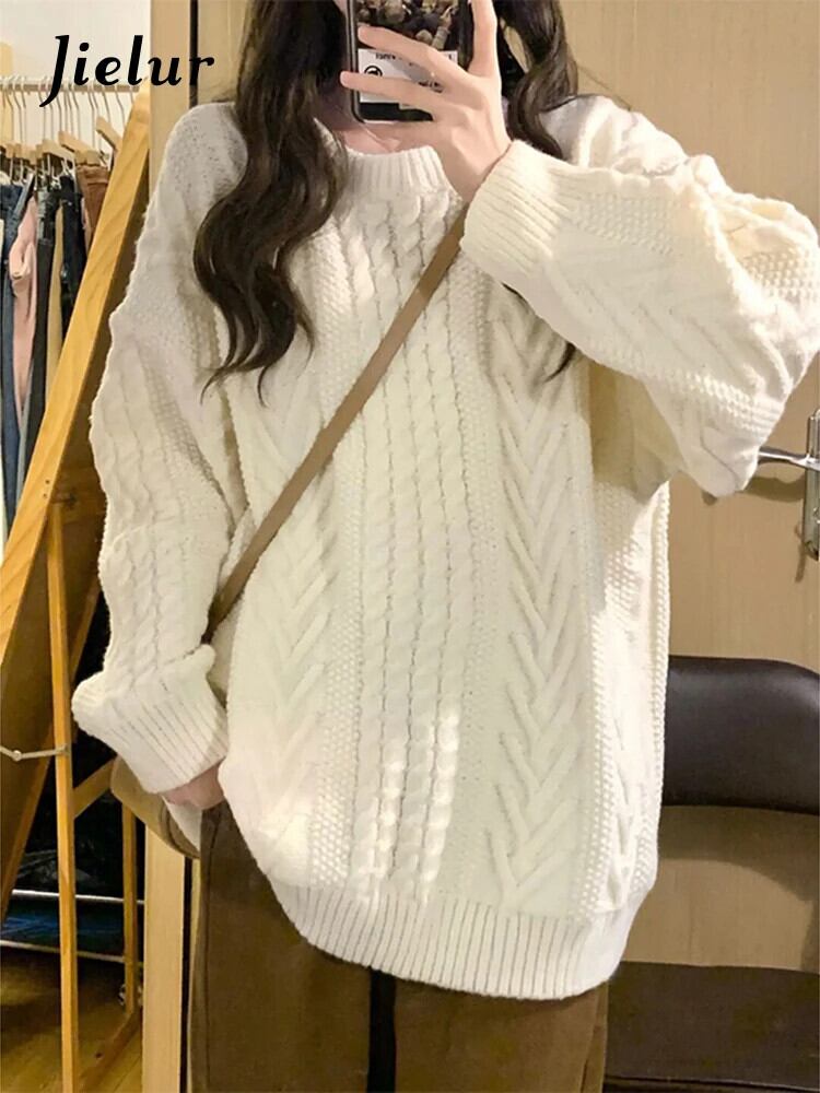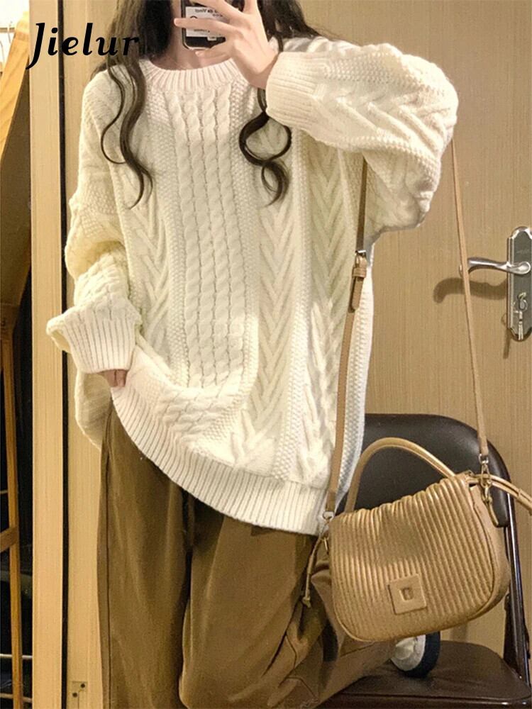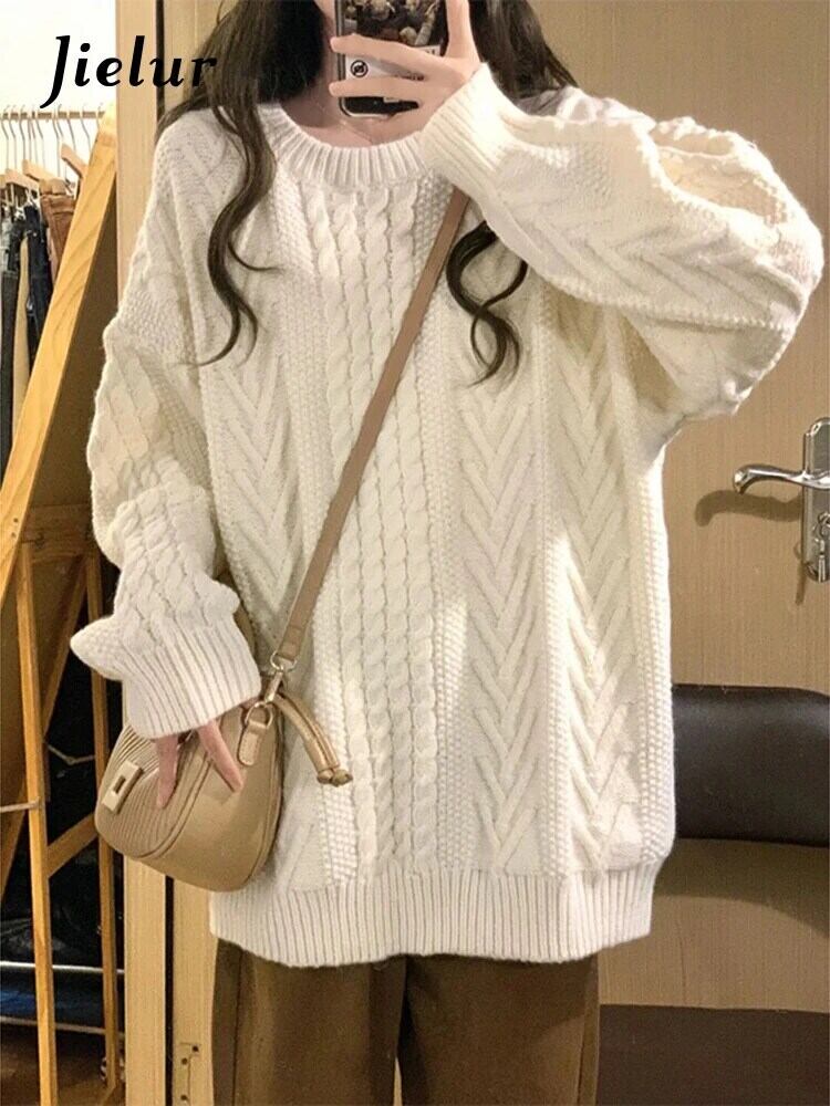 送料無料 Jielur 秋ソリッドカラースリムプルオーバー女性ルーズシンプルなプルオーバーオフホワイトベーシックストリートニットトップ女性 オータム 秋物 AE12188787846292998734