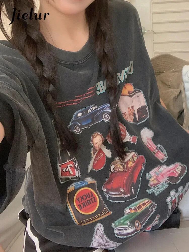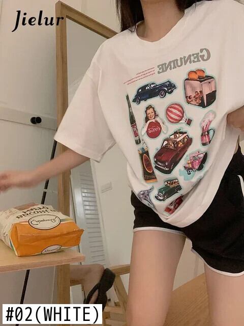 送料無料 Jielur 夏緩い女性の Tシャツアメリカンレトロシックに甘い Tシャツ女性ダークグレー白シンプルなベーシックトップ ホワイト 大人ガーリー スウィート キュート カジュアル サマー 夏物 AE12188787831728109556