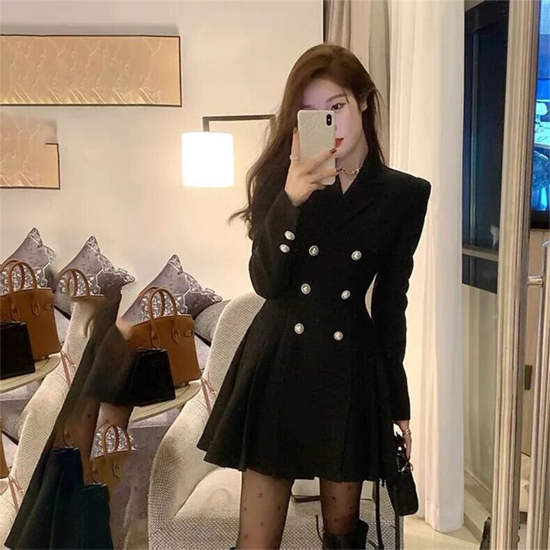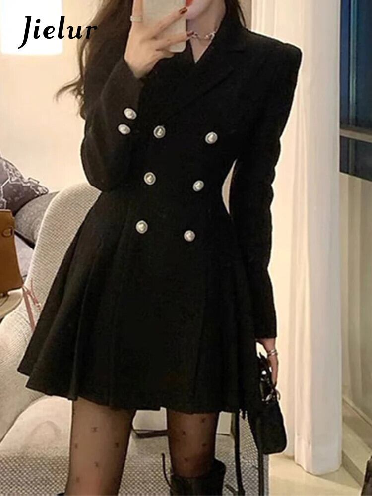 送料無料 Jielur 秋ソリッドカラーの甘いドレス女性ルーズドレス女性フレンチブラックストリートシックなドレス 大人ガーリー スウィート キュート カジュアル オータム 秋物 AE12188787834519072485