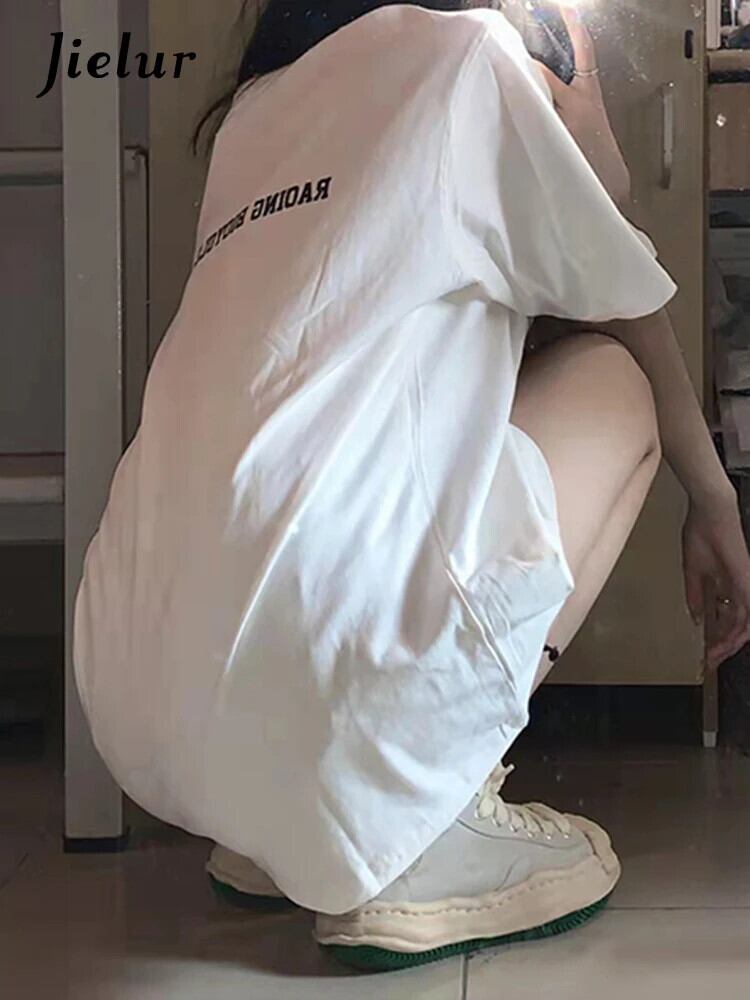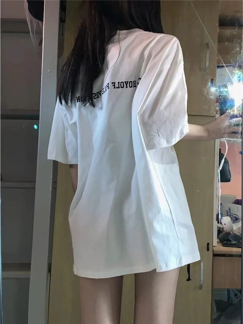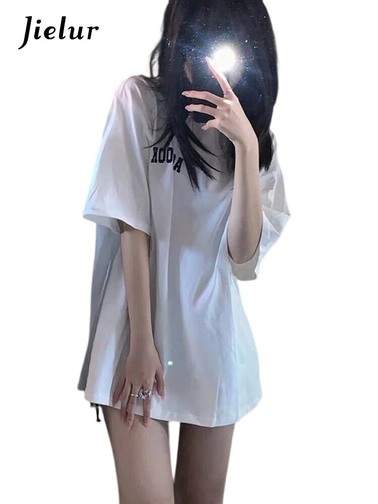送料無料 Jielur 夏アメリカンヴィンテージ女性の Tシャツルーズシンプルな Tシャツ女性白のベーシックストリートシックなトップ ホワイト サマー 夏物 ビンテージ AE12188787866224686817