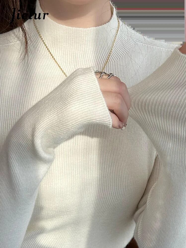 送料無料 Jielur 春無地スリム女性セーターシンプルなベーシックストリート女性セーター白黒グレーアプリコットトップ ホワイト ブラック スプリング 春物 ソリッドカラー AE12188787824788777150