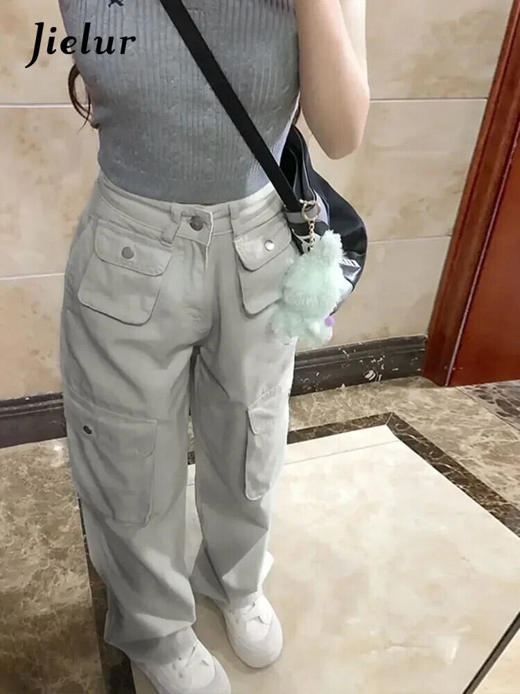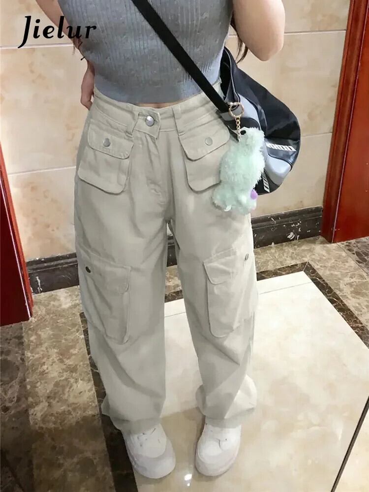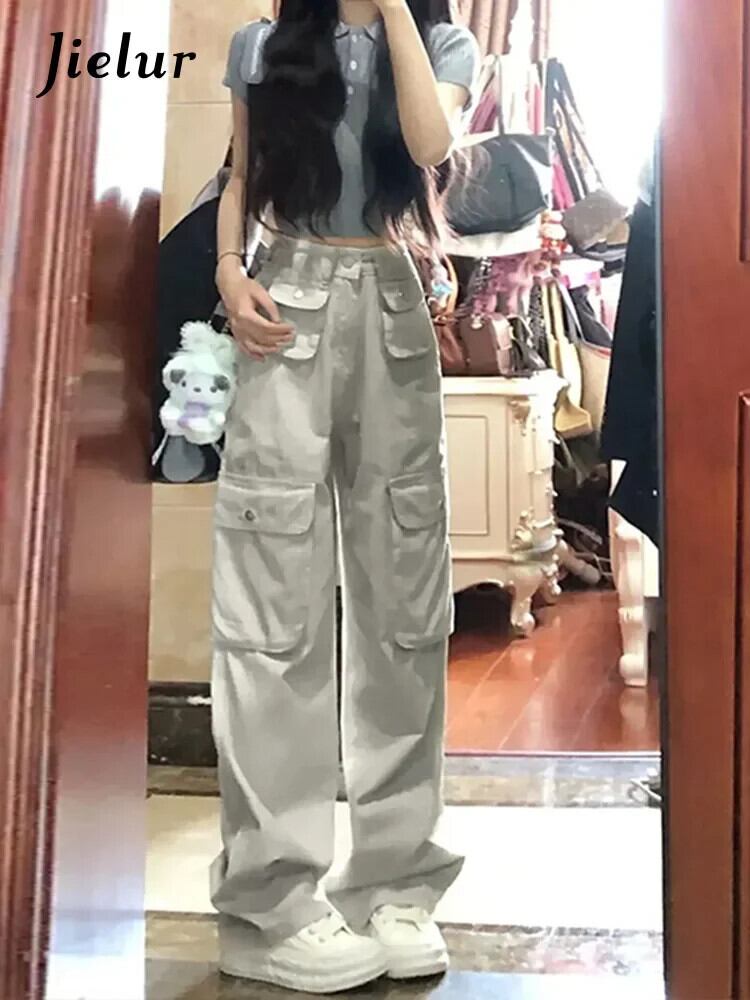 送料無料 Jielur 夏スタイルストリートスリム女性パンツ女性ルーズスリムカーゴパンツ女性ウエストシンプルなワイドレッグパンツ サマー 夏物 ワイドパンツ AE12188787853974564791