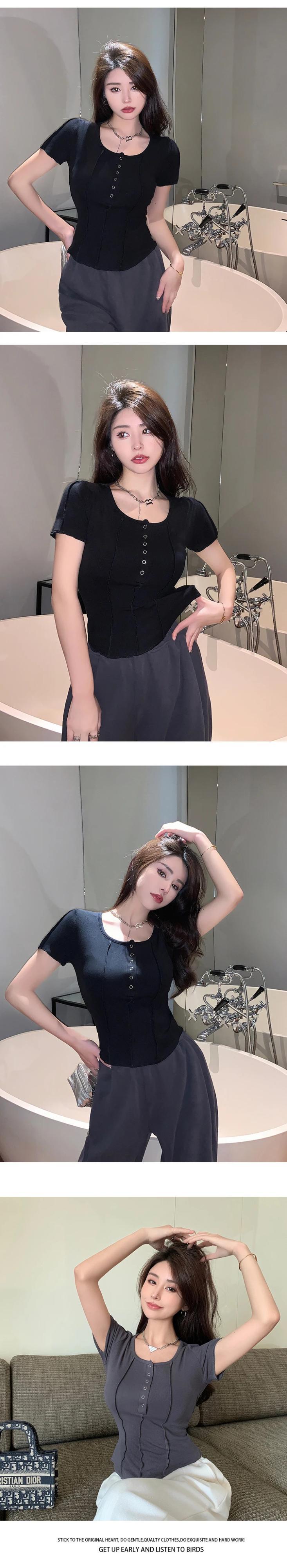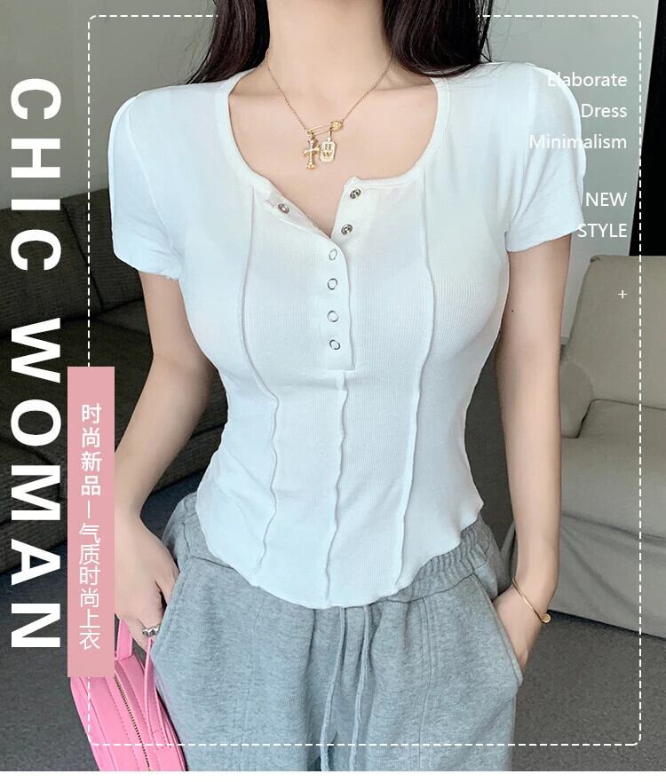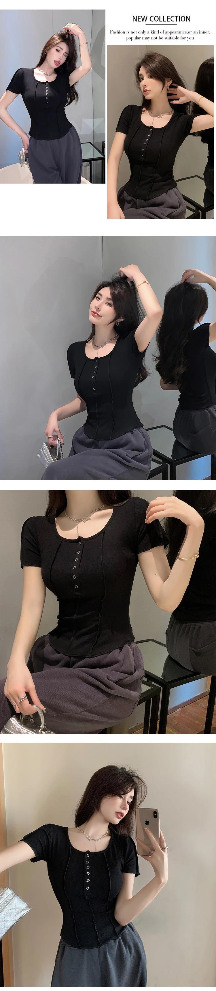 送料無料 Jielur 夏ソリッドカラースリムレディース Tシャツ甘いシンプルな Tシャツベーシックホワイトグレーブラック O ネックトップ 大人ガーリー スウィート キュート カジュアル サマー 夏物 Oネック AE1218878788588107065