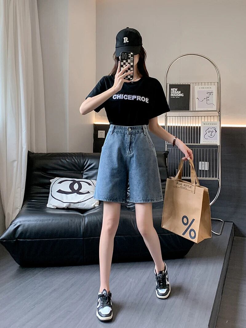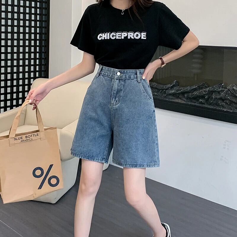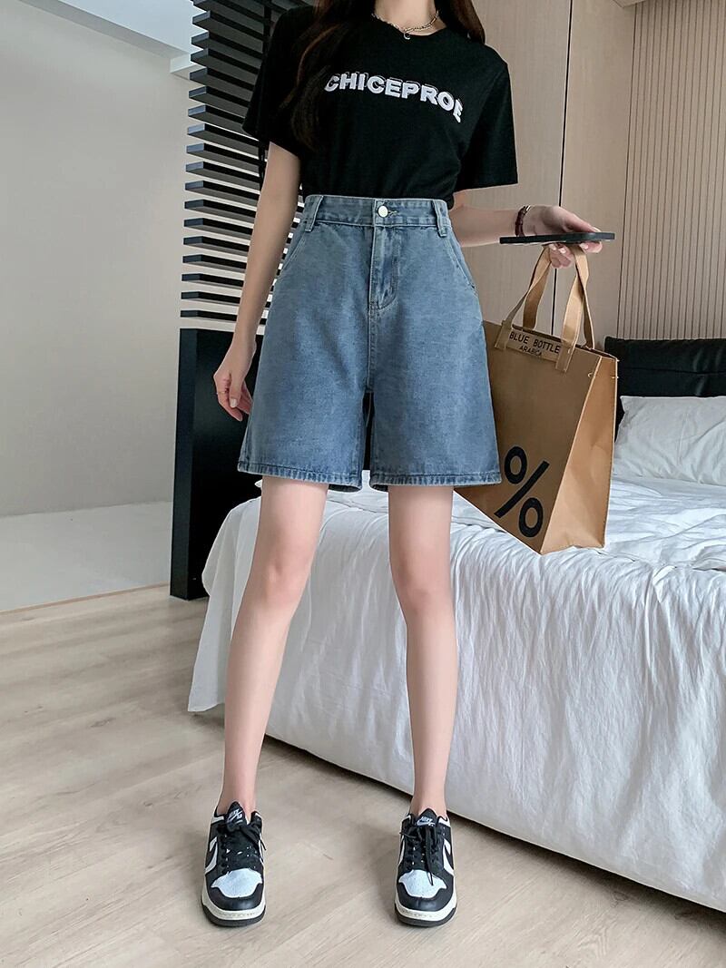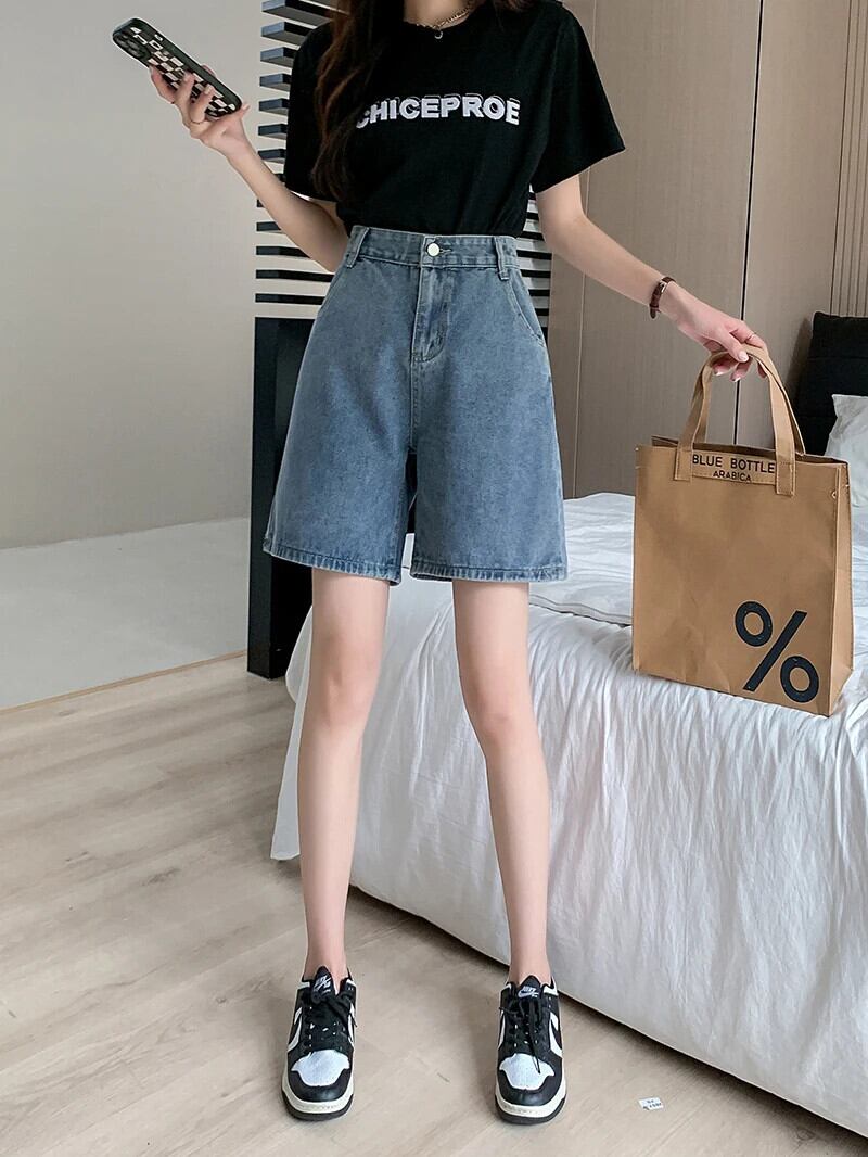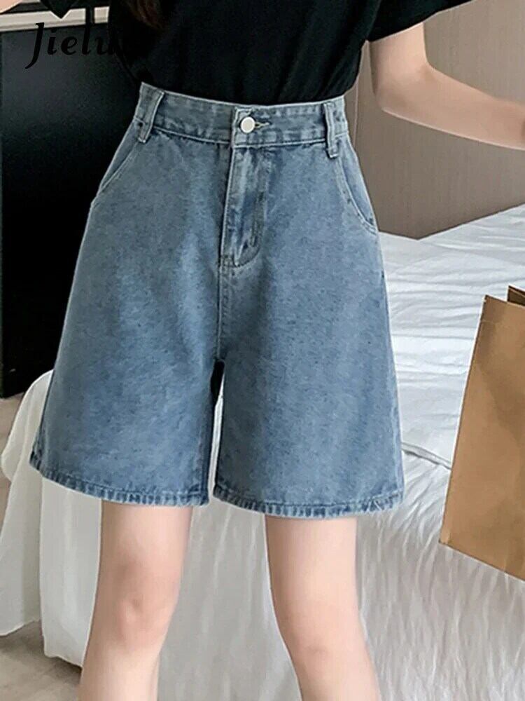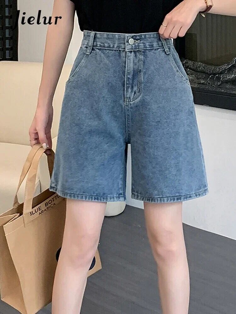 送料無料 Jielur 夏ヴィンテージウエストデニムショーツ女性スリムレジャー女性のショーツルーズシンプルなベーシックショーツ サマー 夏物 ブルマー ビンテージ AE12188787818269946191