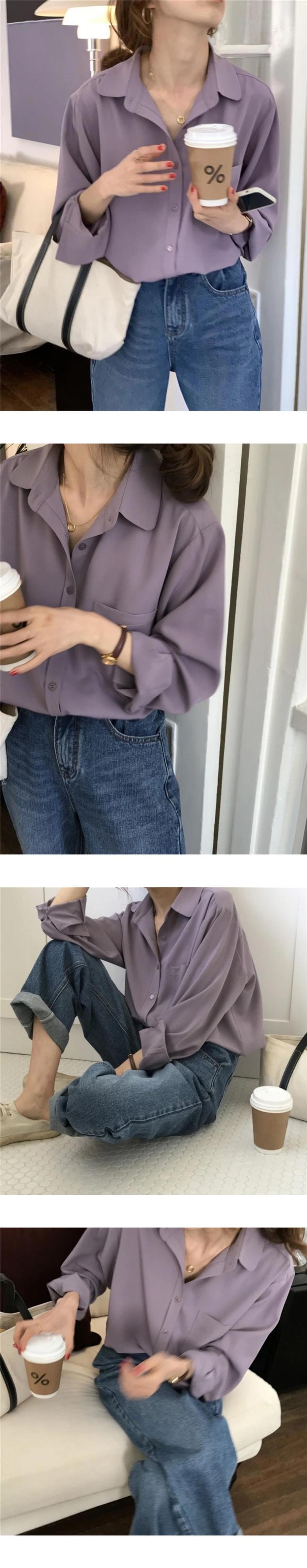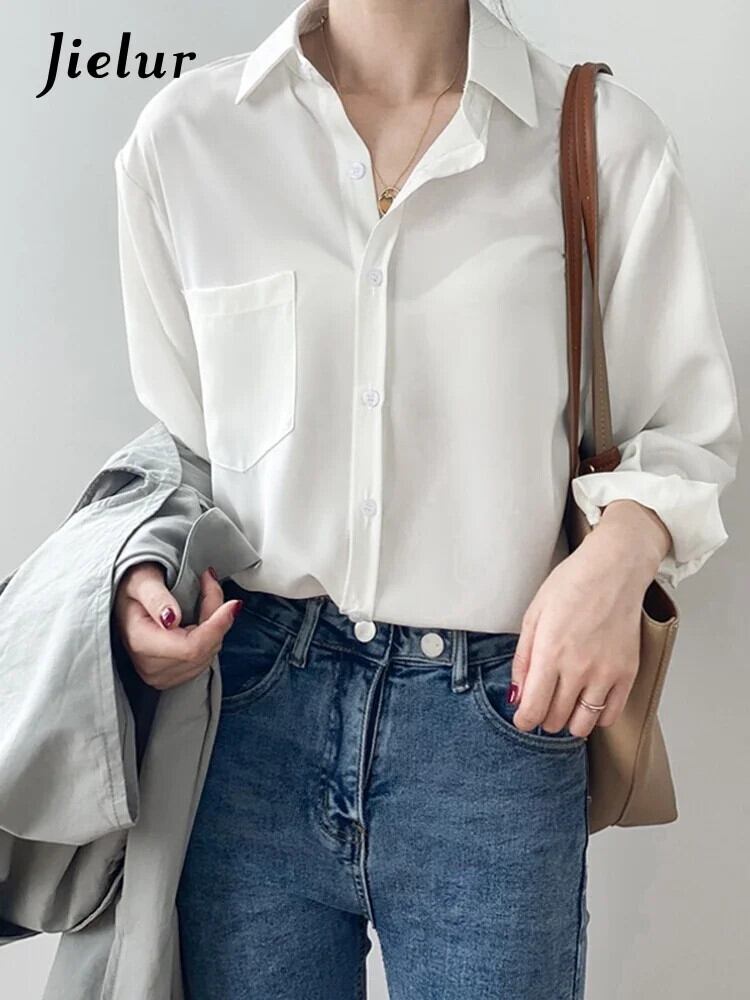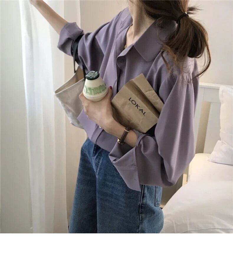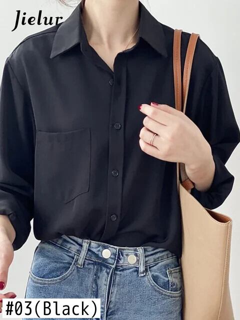 送料無料 Jielur ダークパープル長袖シフォンブラウス春夏レジャー白シャツ女性無地シンプルなブラウス ロング ホワイト スプリング 春物 サマー 夏物 ソリッドカラー AE12188787859943944868