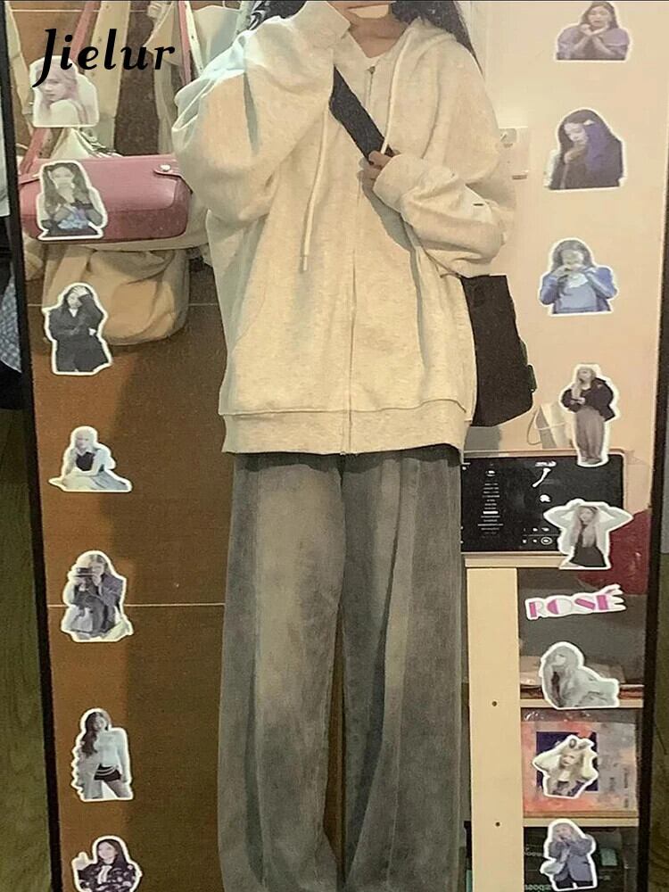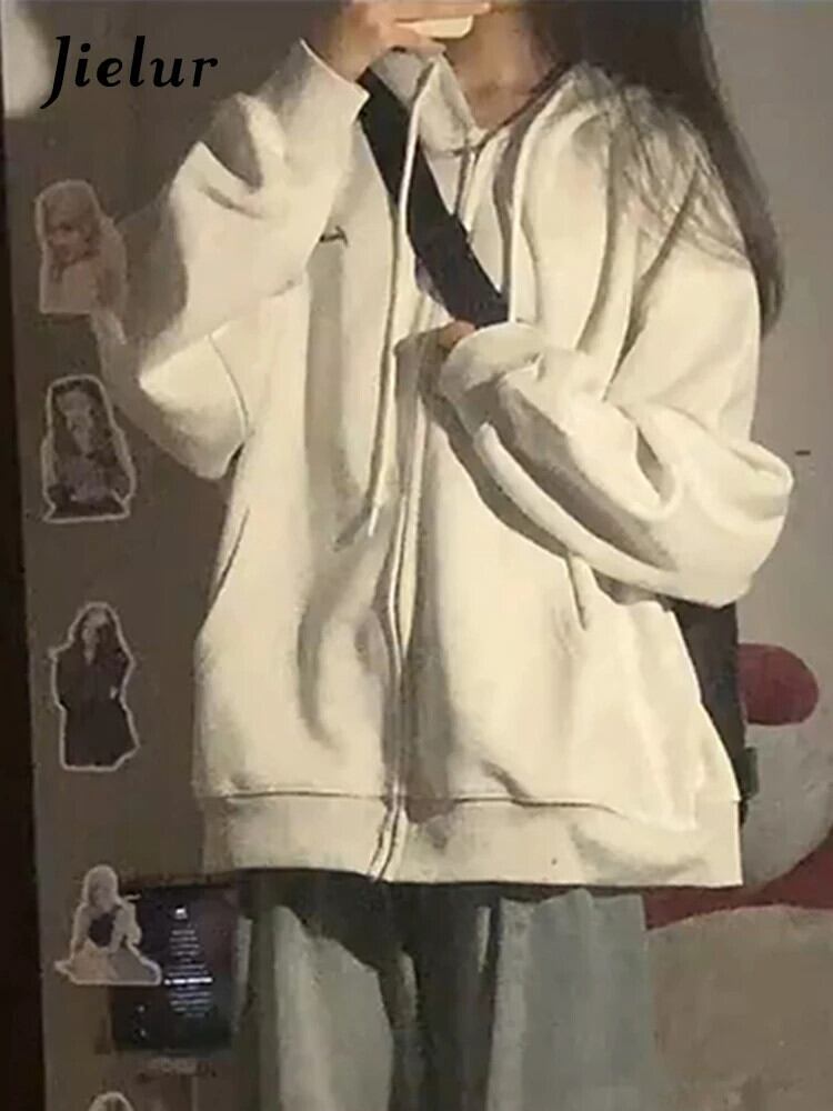 送料無料 Jielur アメリカのルーズ女性パーカー無地シンプルなベーシックストリートシックなパーカー女性グレートップ ソリッドカラー AE12188787817940917897