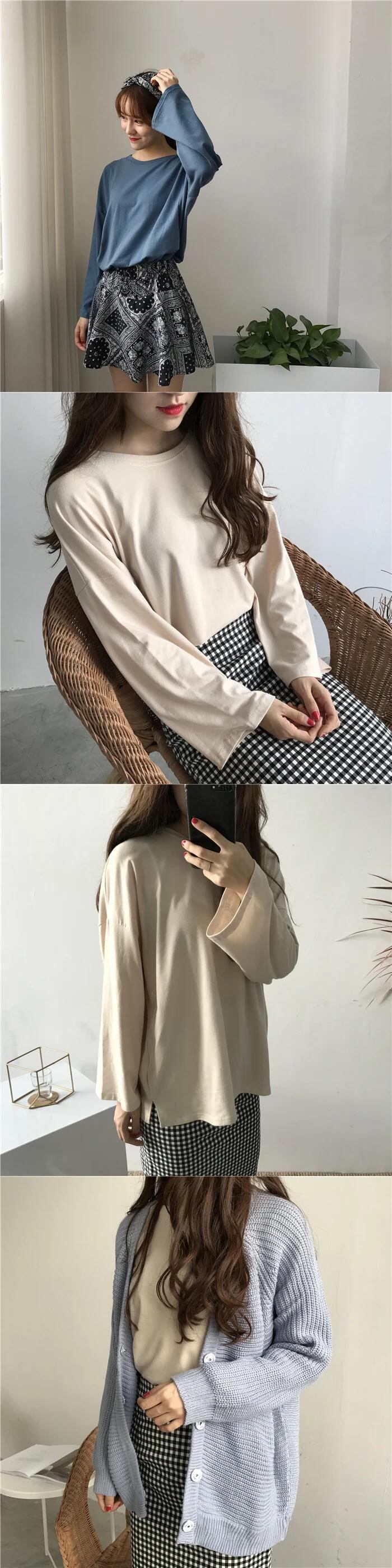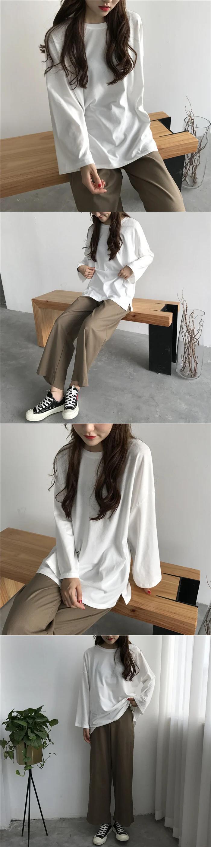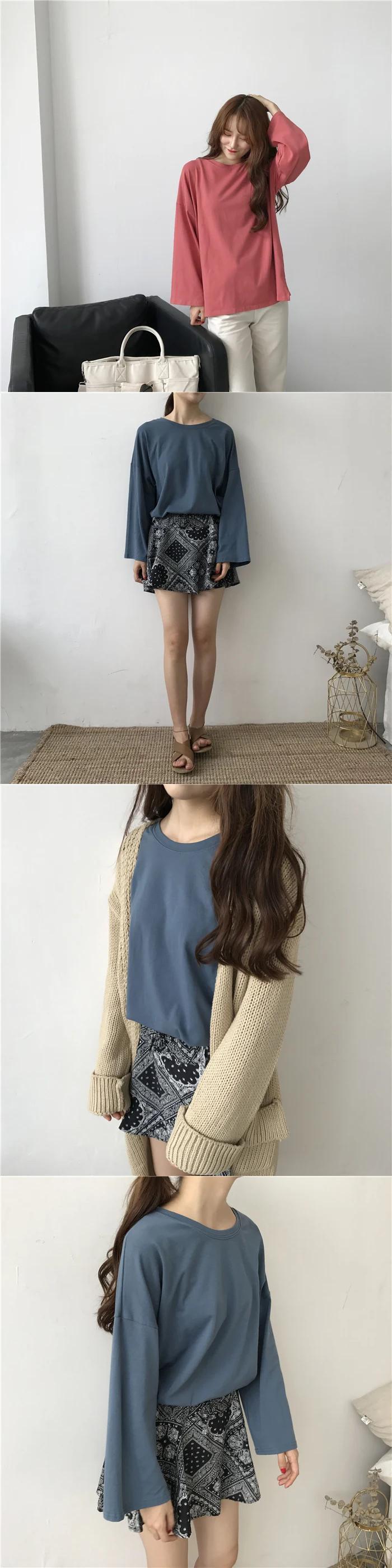 送料無料 Jielur Tシャツ 7 ソリッドカラー原宿 Tシャツ女性フレアスリーブベーシックトップ長袖白 Tシャツ Ropa ロング ホワイト かわいい AE12188787840874926746