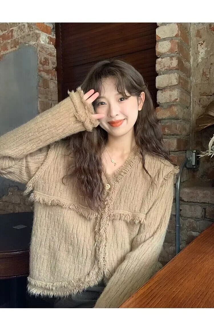 送料無料 Jielur 秋スタイルレトロ電話プルオーバー女性ルーズニット女性のプルオーバーカーキアプリコットシックなプルオーバー オータム 秋物 AE12188787876811568746