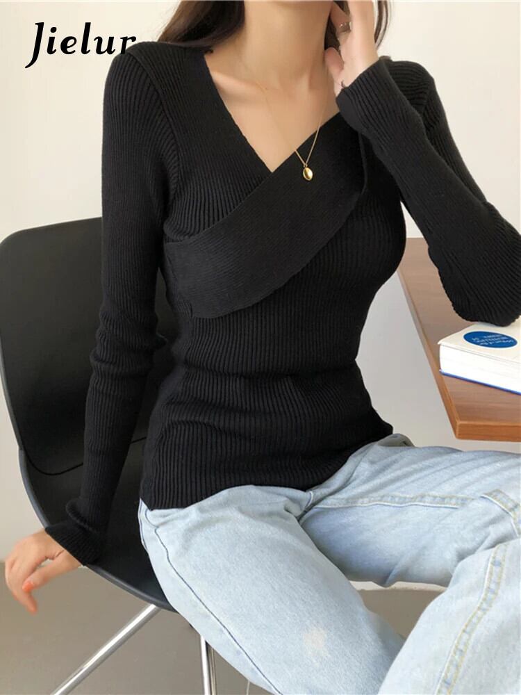 送料無料 Jielur セクシーな女性セーター秋不規則なネックスリムニットトップイエロープルオーバーオフィスレディ基本ジャンパー 7 色 オータム 秋物 会社 学校 通勤や通学にも AE12188787832848065049