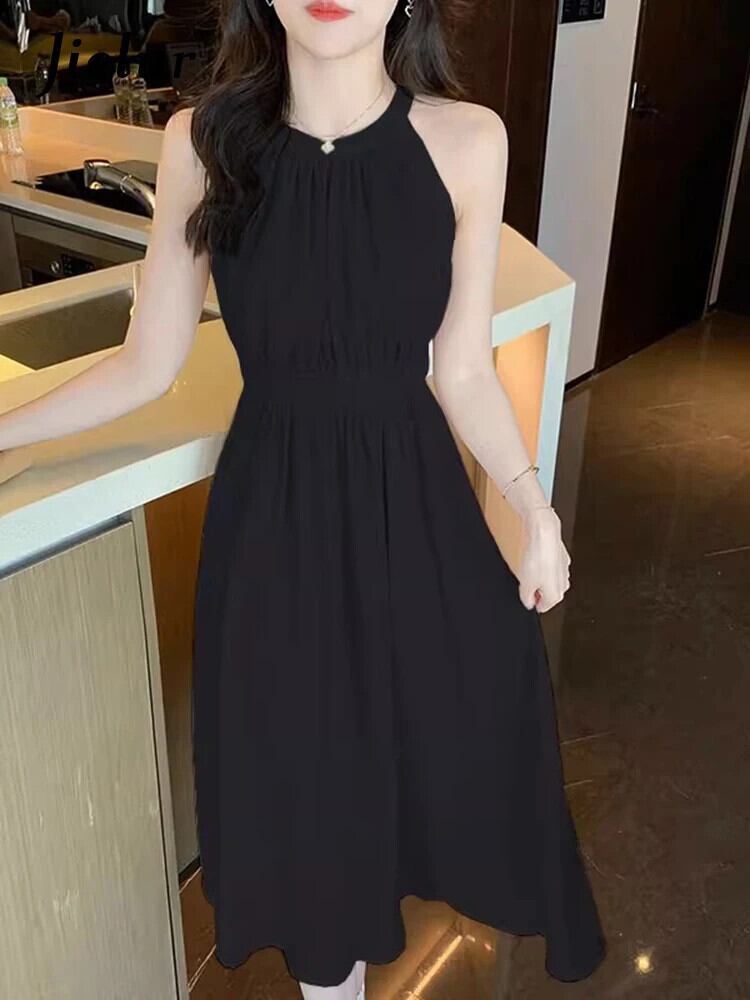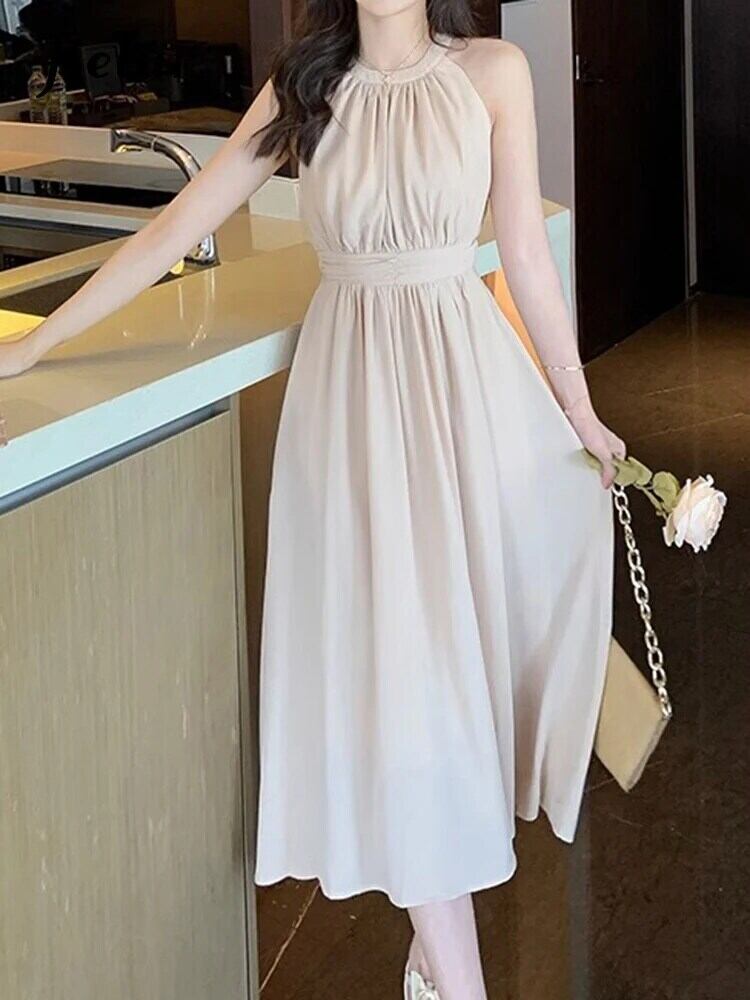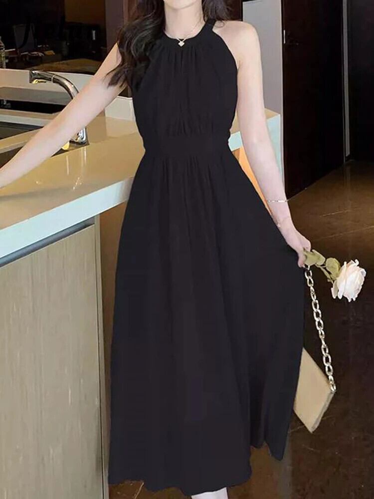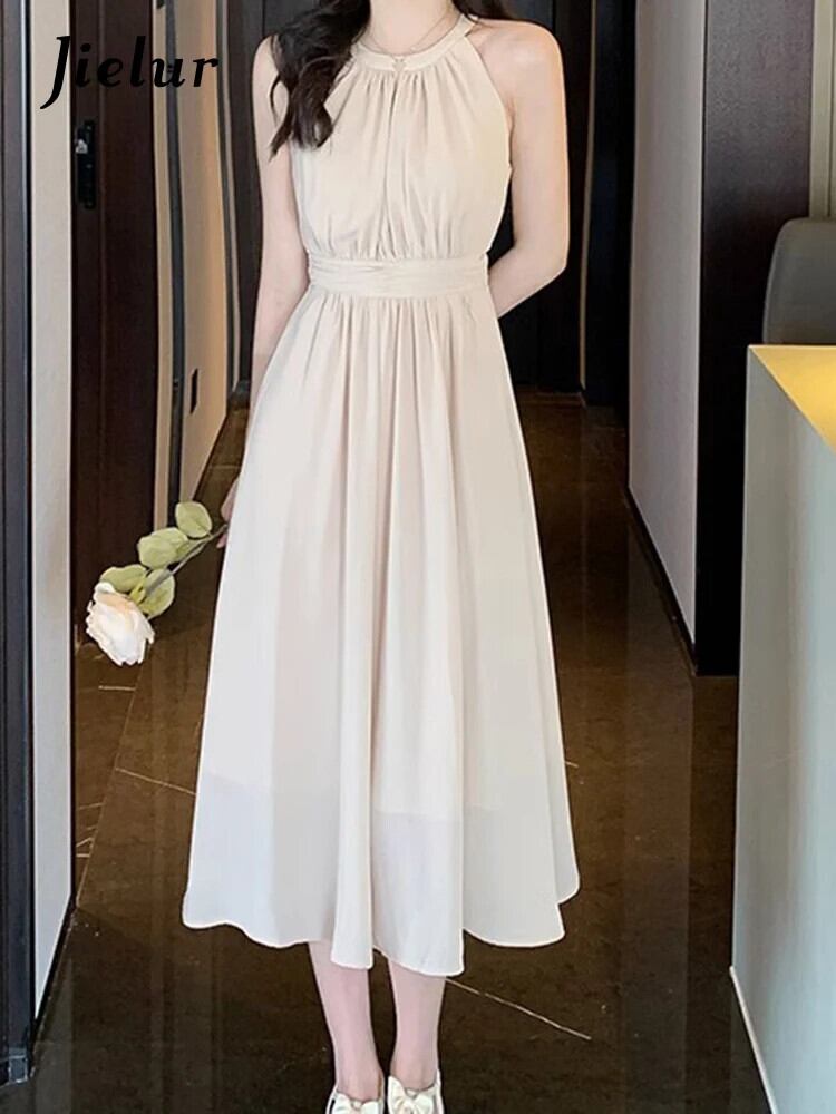 送料無料 Jielur 夏ソリッドカラースリムレディースドレス甘いシフォンドレスブラックアプリコットノースリーブドレス 大人ガーリー スウィート キュート カジュアル サマー 夏物 AE12188787834032383961