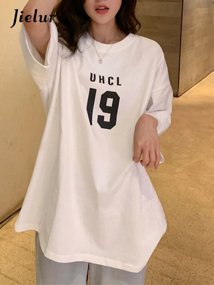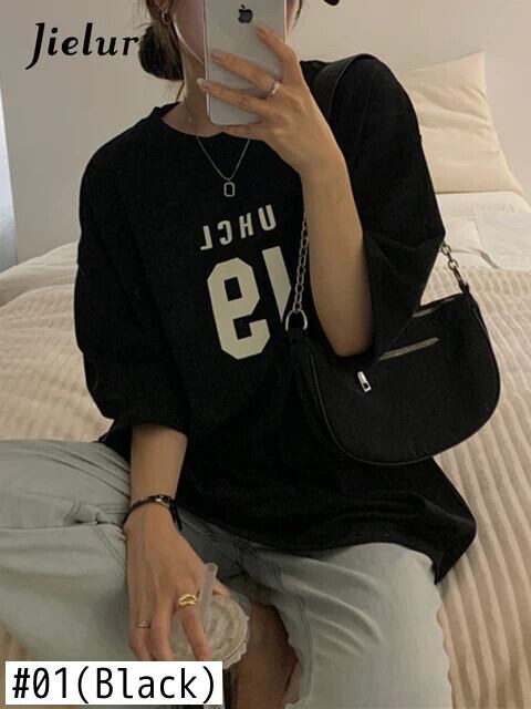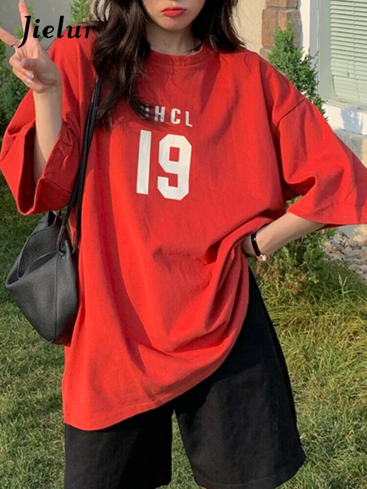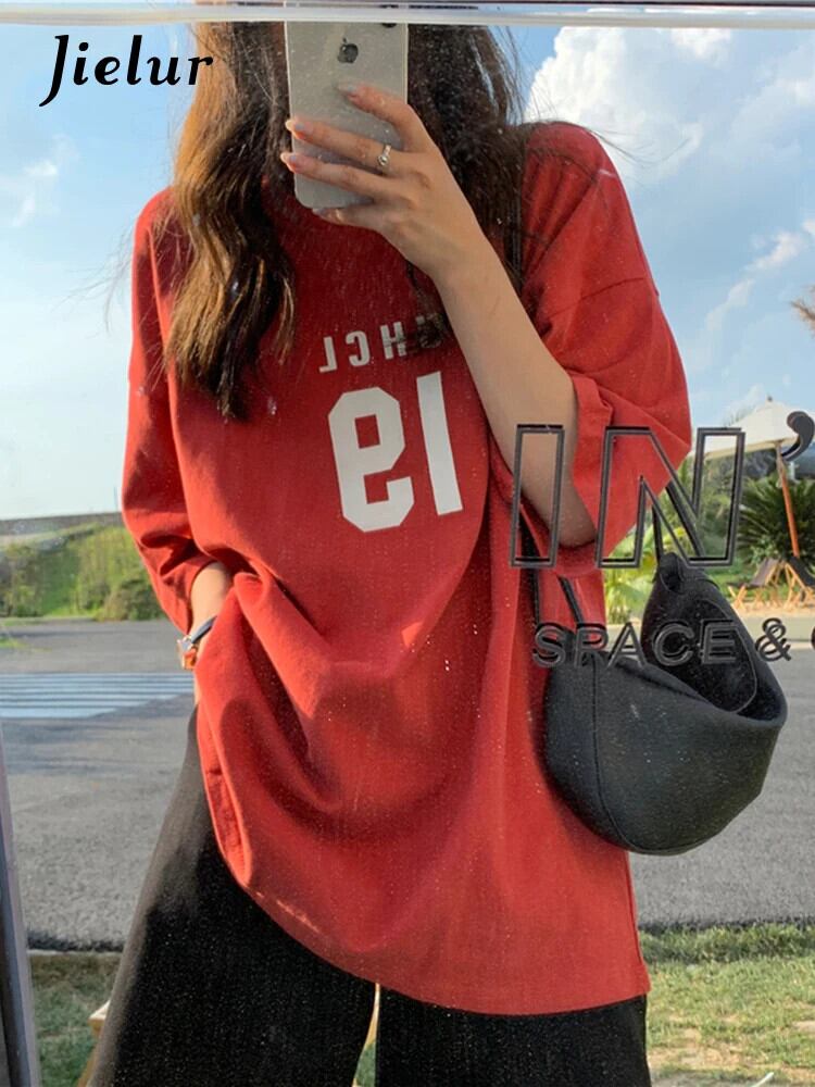 送料無料 Jielur ルース原宿 Tシャツ女性の夏のシンプルな Tシャツクール白赤オレンジ綿レタートップス M-XL ホワイト レッド コットン かわいい サマー 夏物 AE12188787889619294715