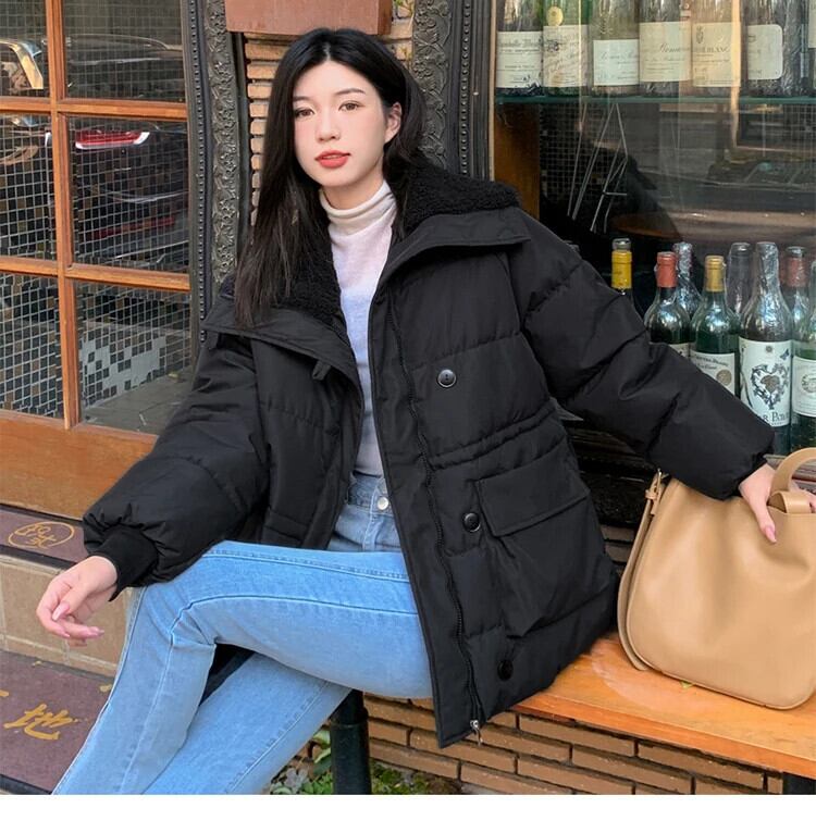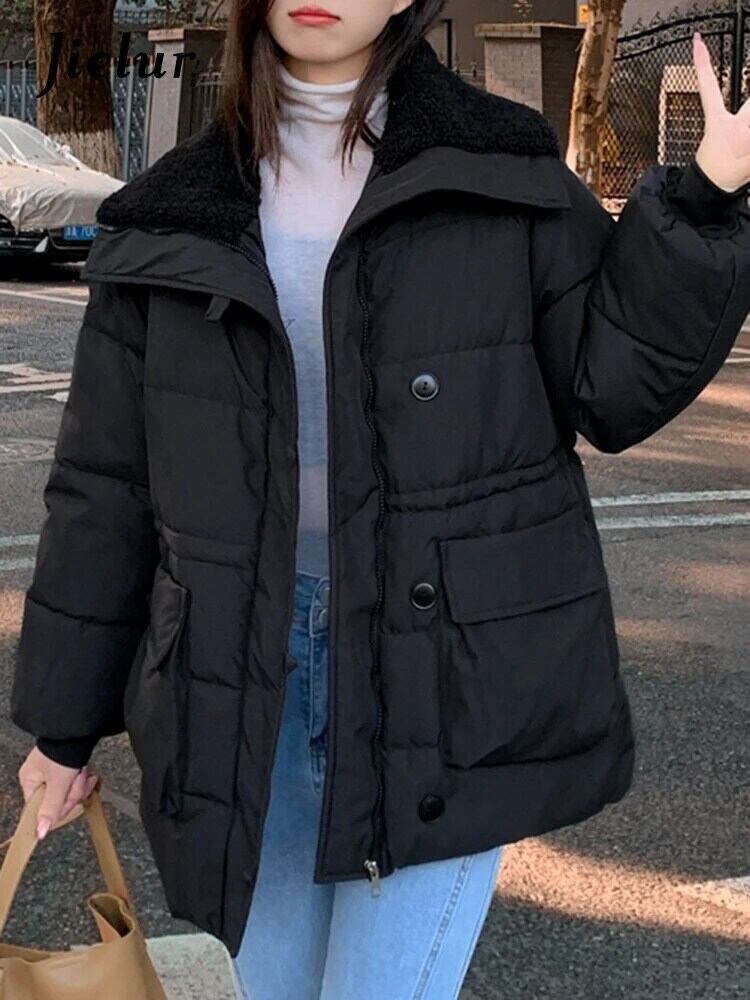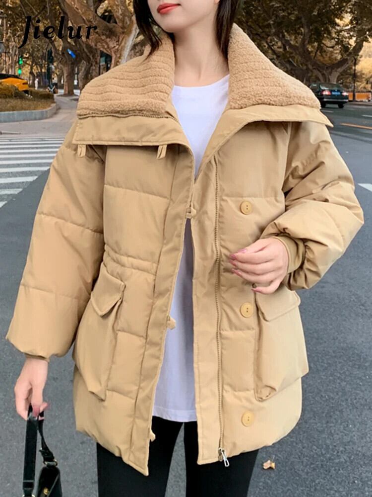 送料無料 Jielur アメリカンルーズ厚手暖かいパーカー冬のベーシックシンプルな無地シックなボタンの女性パーカー ウィンター 冬物 ソリッドカラー AE12188787841272205730