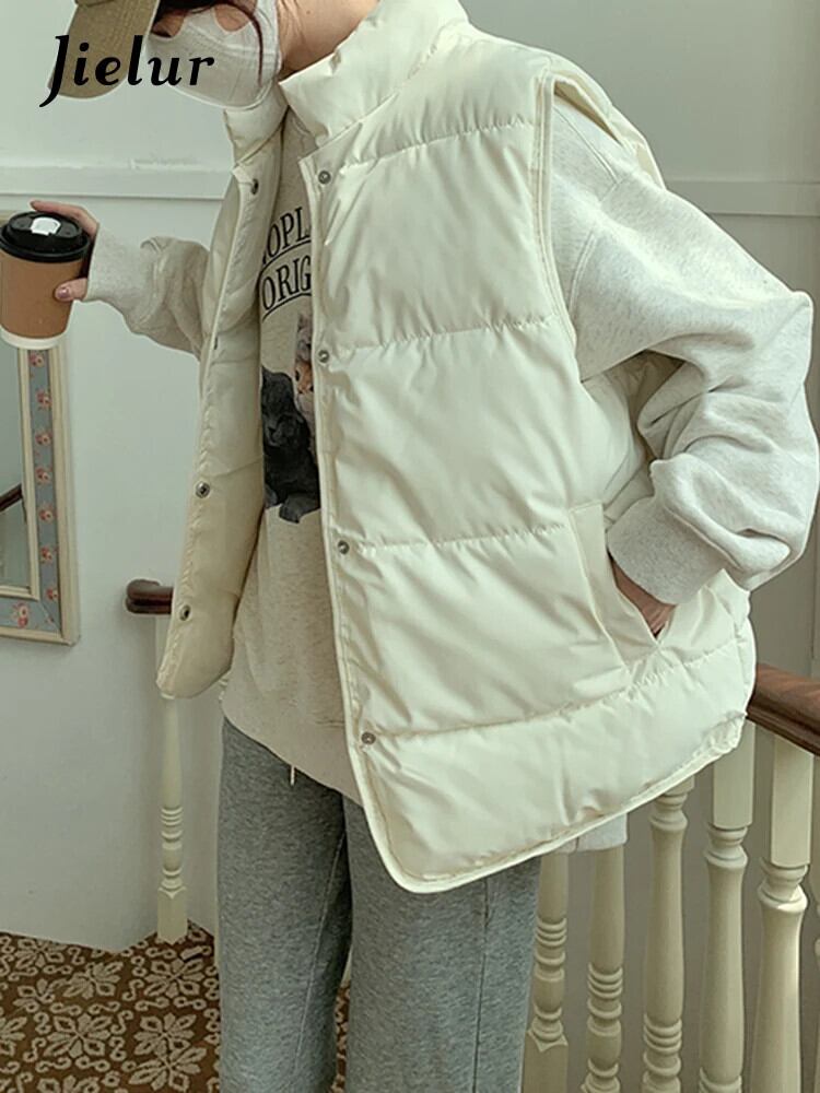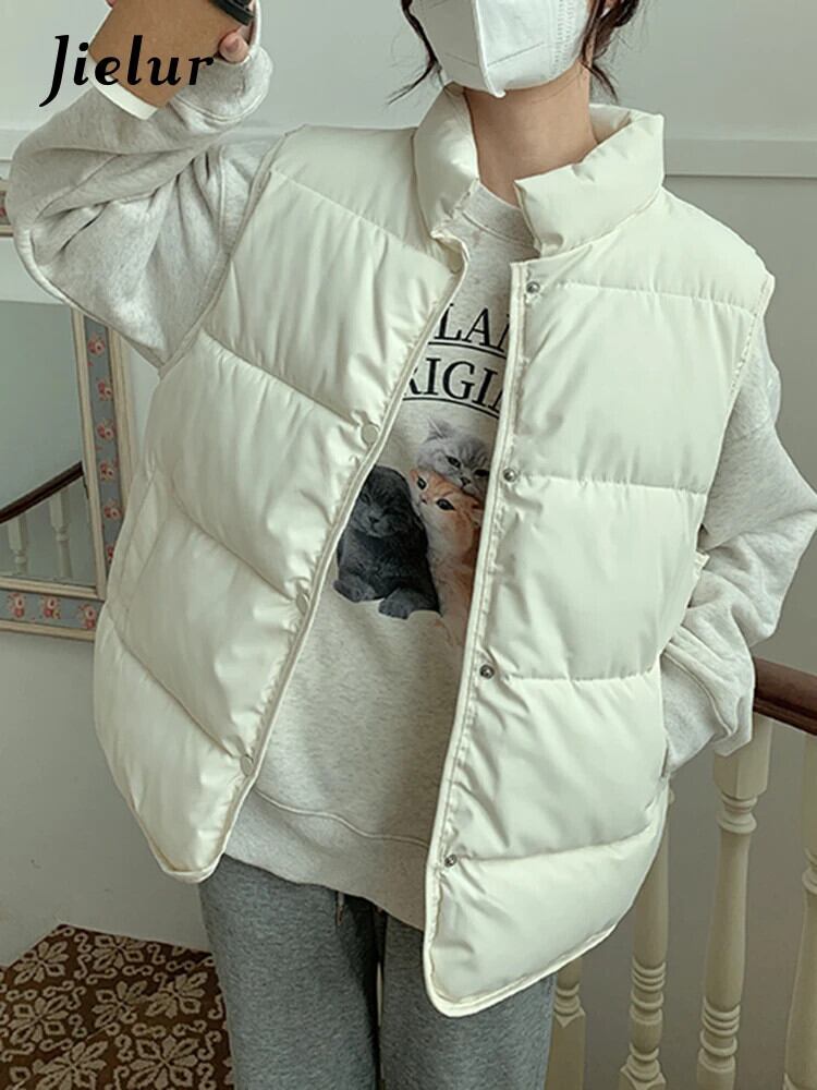 送料無料 Jielur 秋冬ベスト女性ソリッドカラースリムベスト白黒カーキノースリーブシックトップ女性 ホワイト ブラック オータム 秋物 ウィンター 冬物 AE12188787827255951410