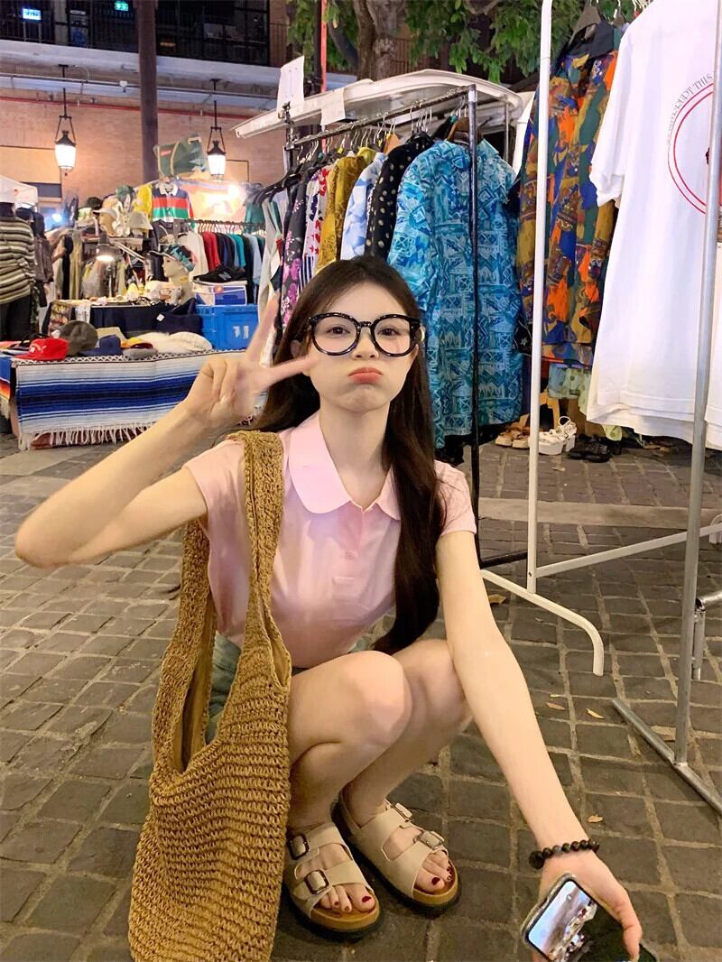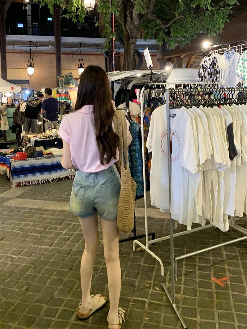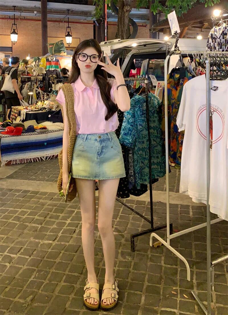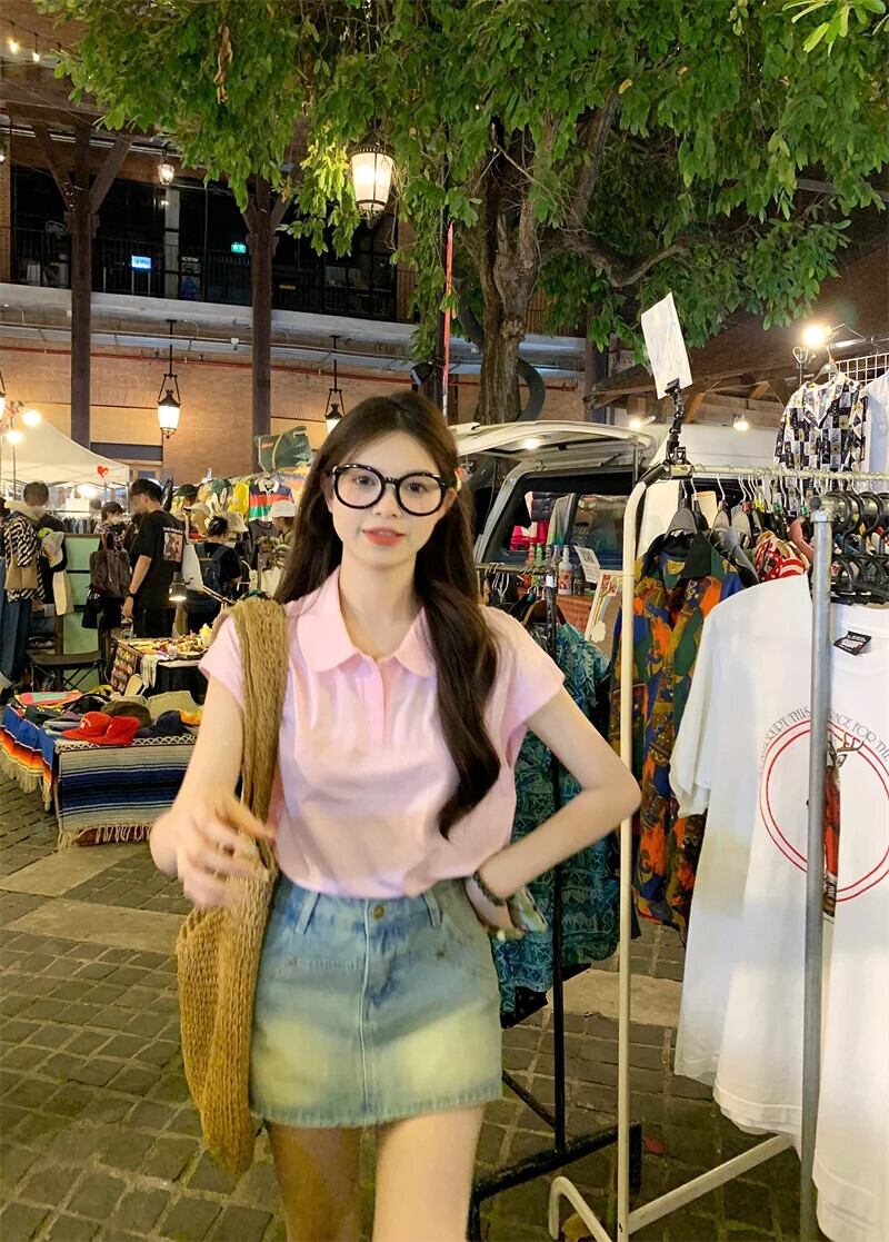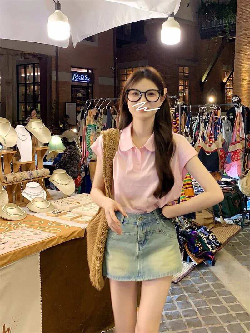 送料無料 Jielur 夏無地スリム女性の Tシャツアメリカンレトロデニムスカート女性ピンクルーズノースリーブトップ サマー 夏物 ソリッドカラー AE1218878785889338580
