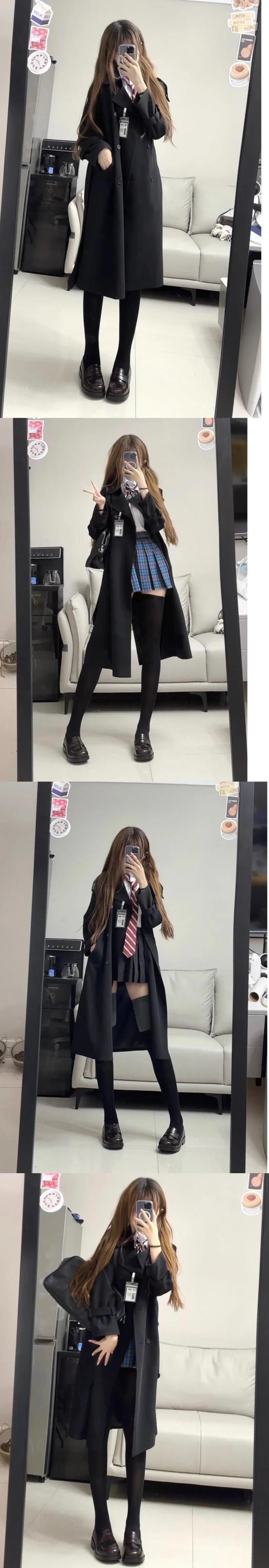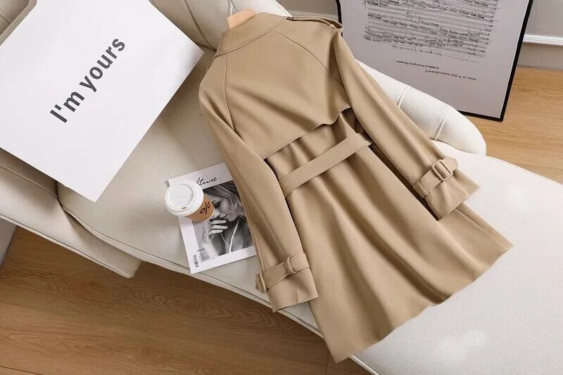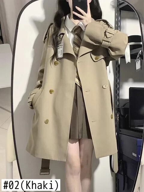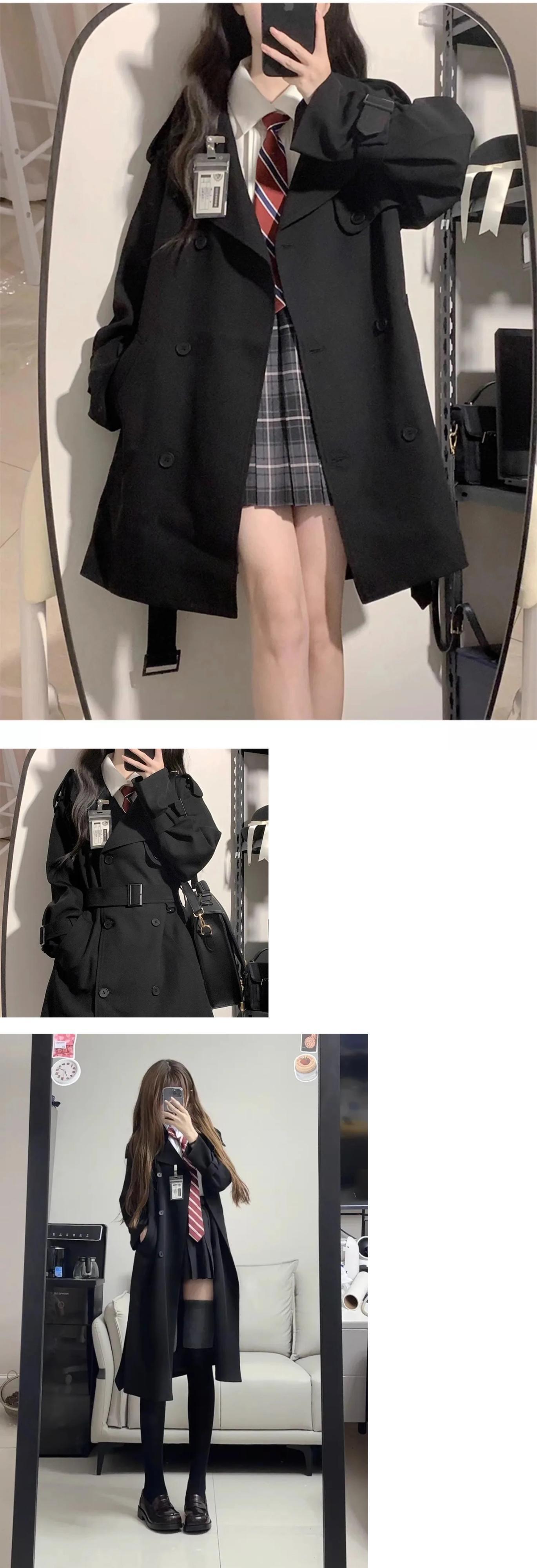 送料無料 Jielur 黒 Clic スリムウエスト女性トレンチシンプルなルーズ無地ダブルブレストシックスリーブトレンチ ブラック ソリッドカラー AE12188787832390524885