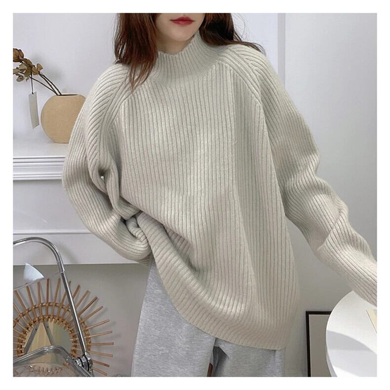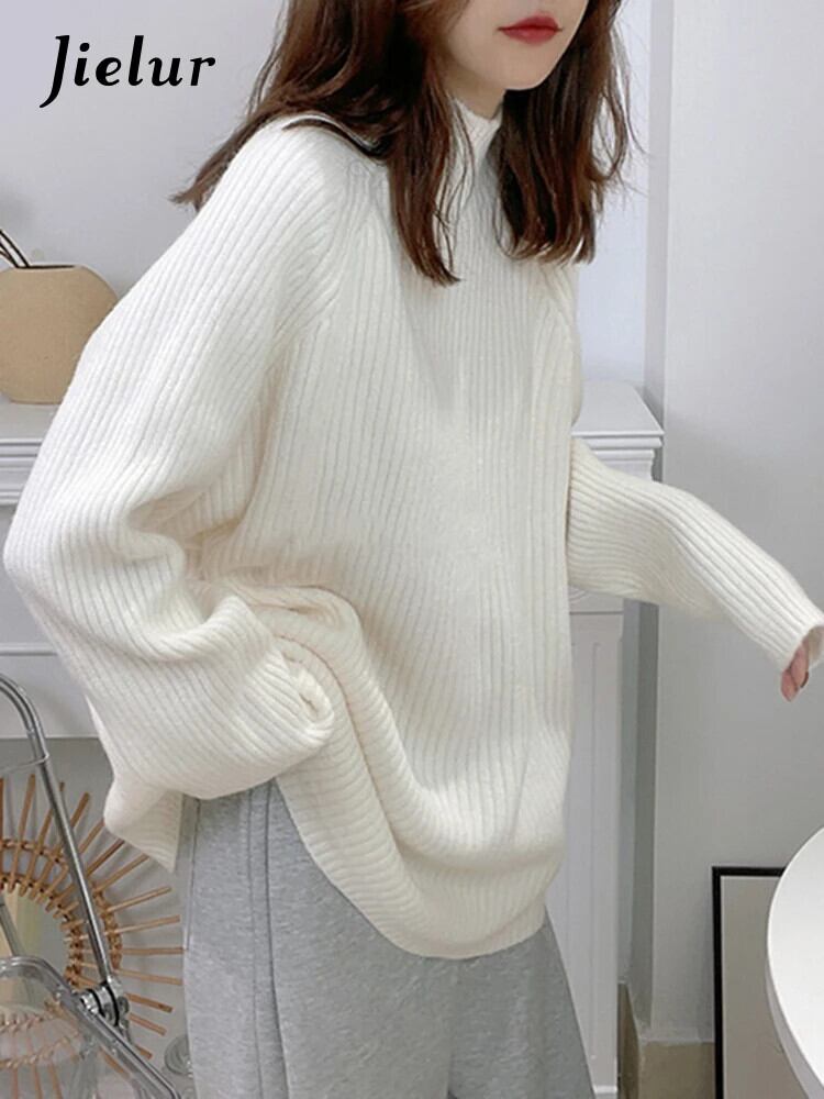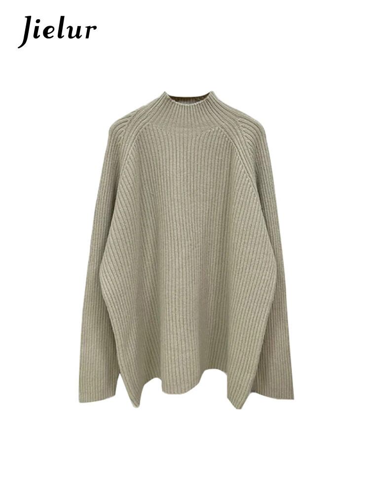 送料無料 Jielur 無地暖かいセーターニットストライプ女性プルオーバー秋のベーシックルーズ長袖プルオーバー ロング オータム 秋物 ソリッドカラー AE12188787853892346520