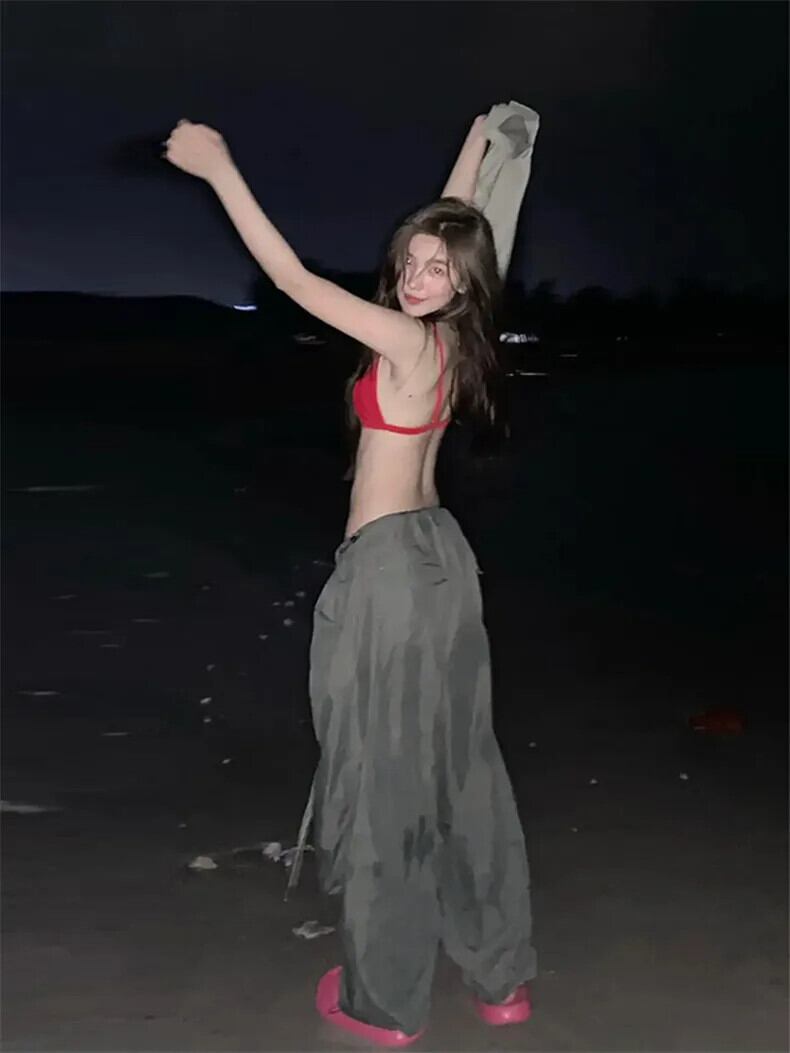 送料無料 Jielur 夏ストリートスリム女性パンツリラックススリムワイドレッグパンツ女性ウエストシンプルベーシックシックなパンツ サマー 夏物 ワイドパンツ AE12188787811918792402