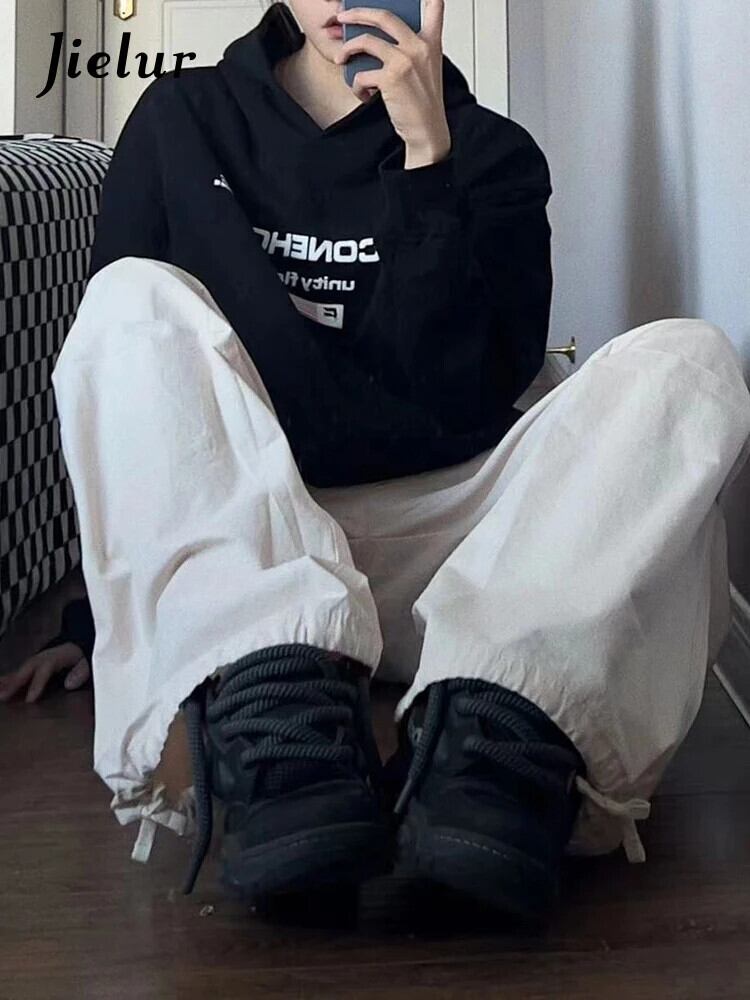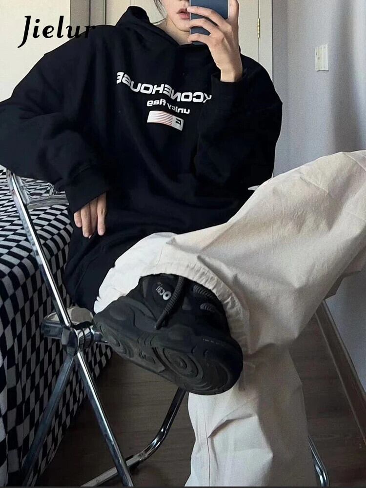送料無料 Jielur フード付きレタープリントルーズ女性パーカーアメリカンソリッドカラーベーシックシンプルパーカーストリートトップ AE12188787886358872056
