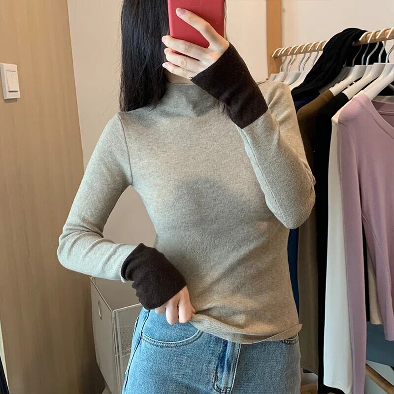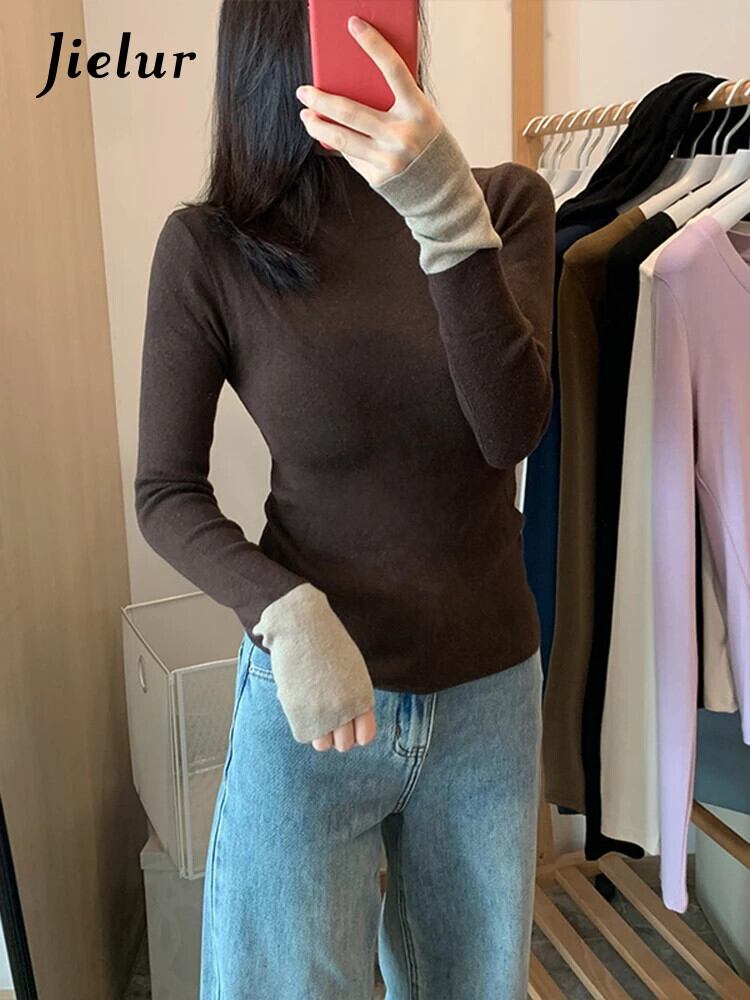 送料無料 Jielur シンプルベーシック女性プルオーバーストリートウーマンプルオーバーブラックコーヒーカーキニットセーター AE12188787819312459488