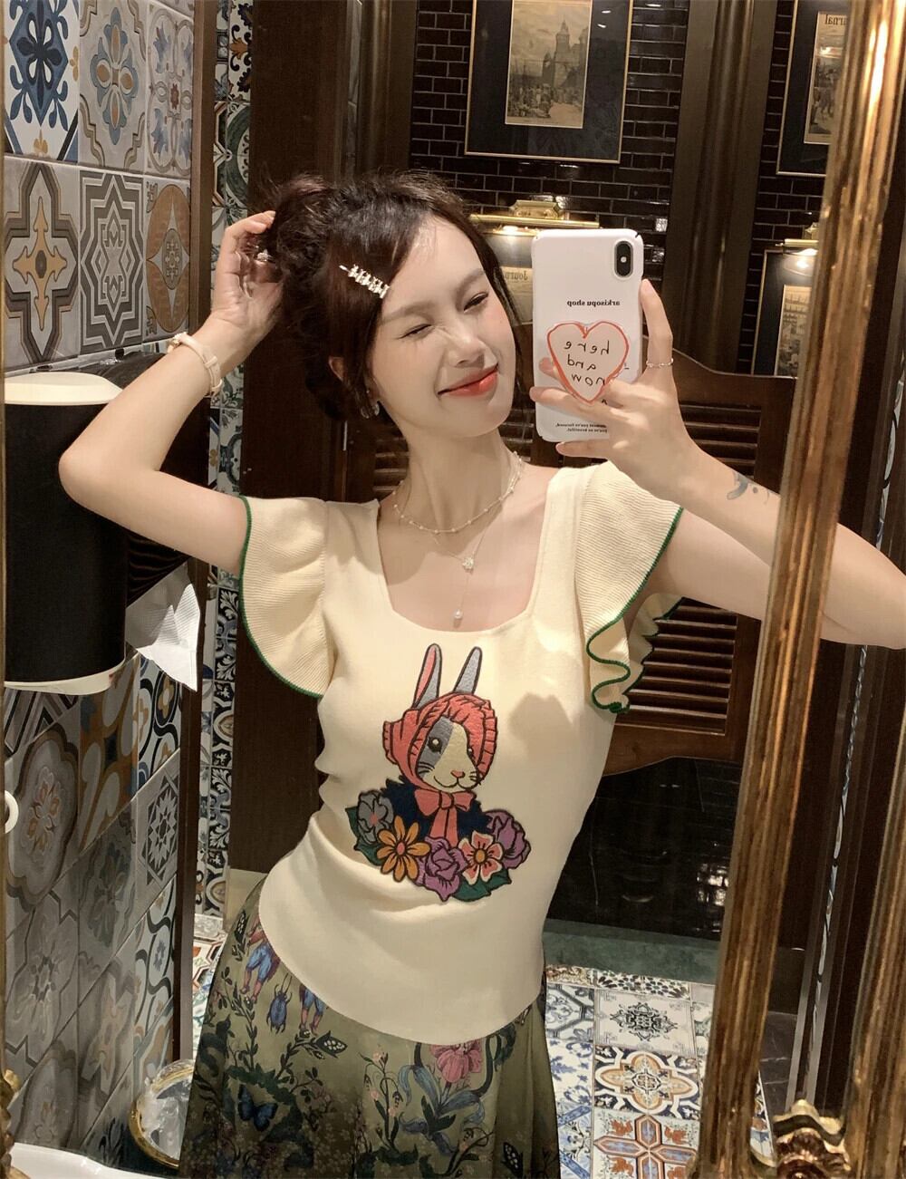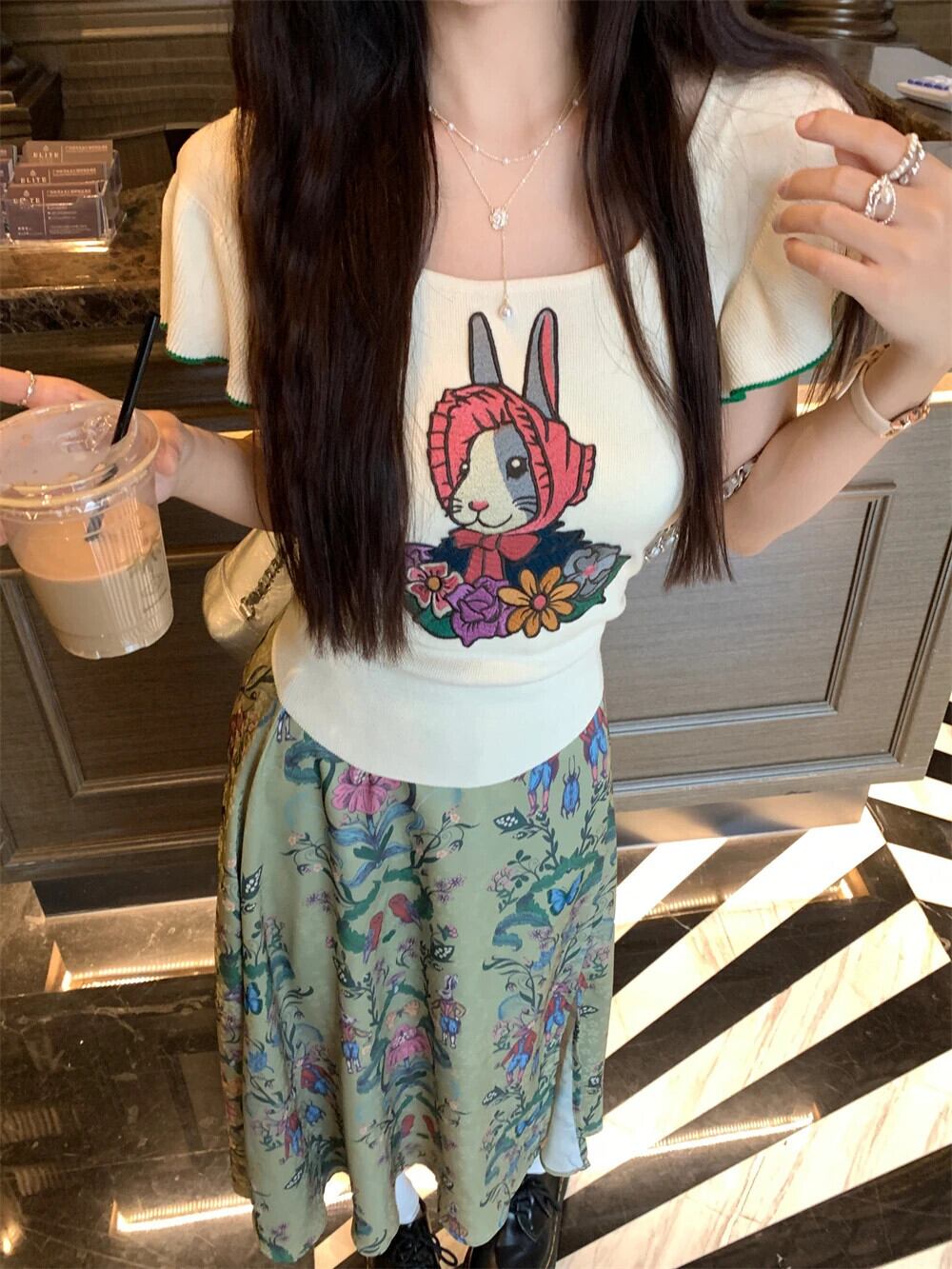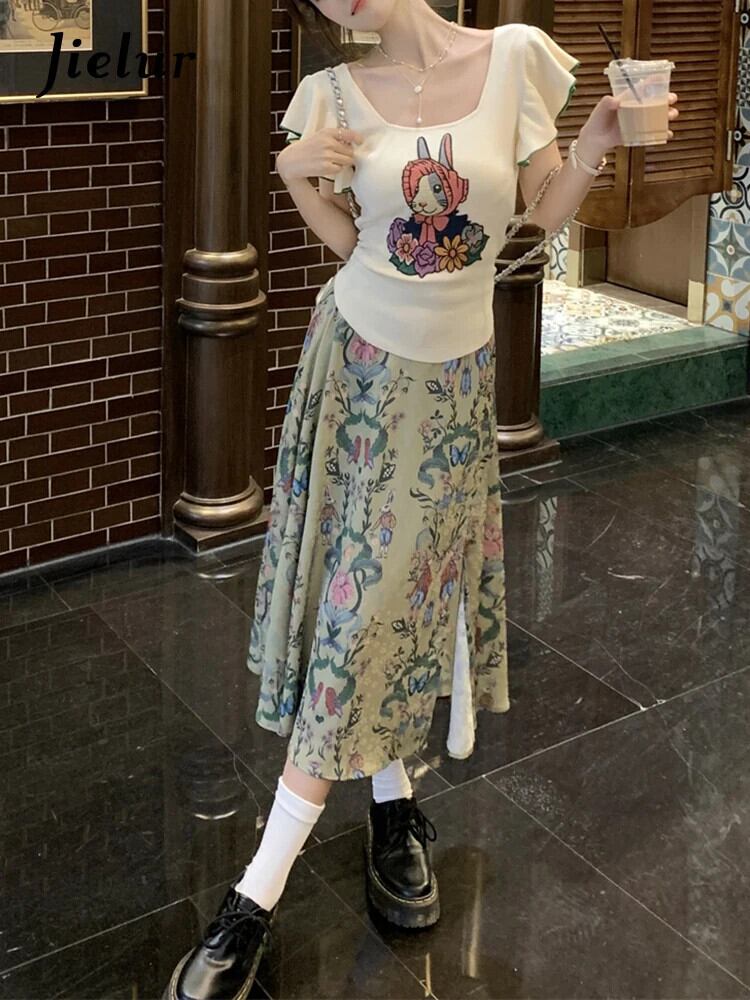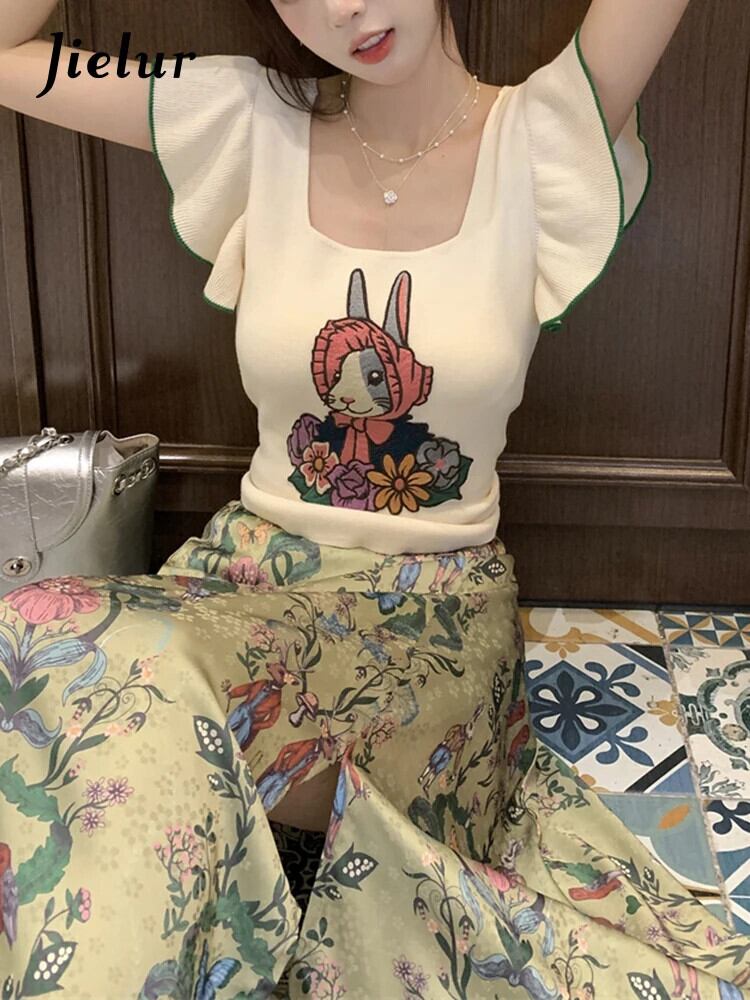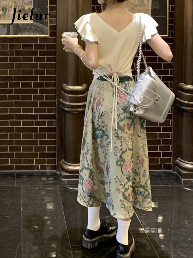 送料無料 Jielur ツーピース夏ヴィンテージ刺繍女性 Tシャツスリムスイートウエストドレスアプリコットグリーンスリムトップ 大人ガーリー スウィート キュート カジュアル サマー 夏物 ビンテージ AE12188787884424673370