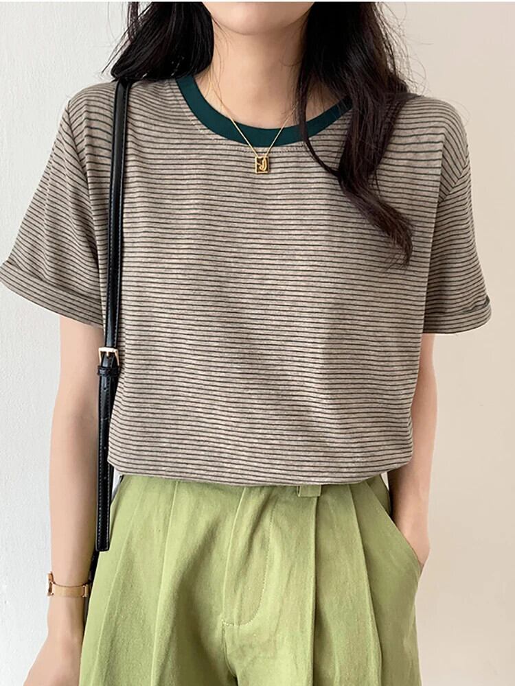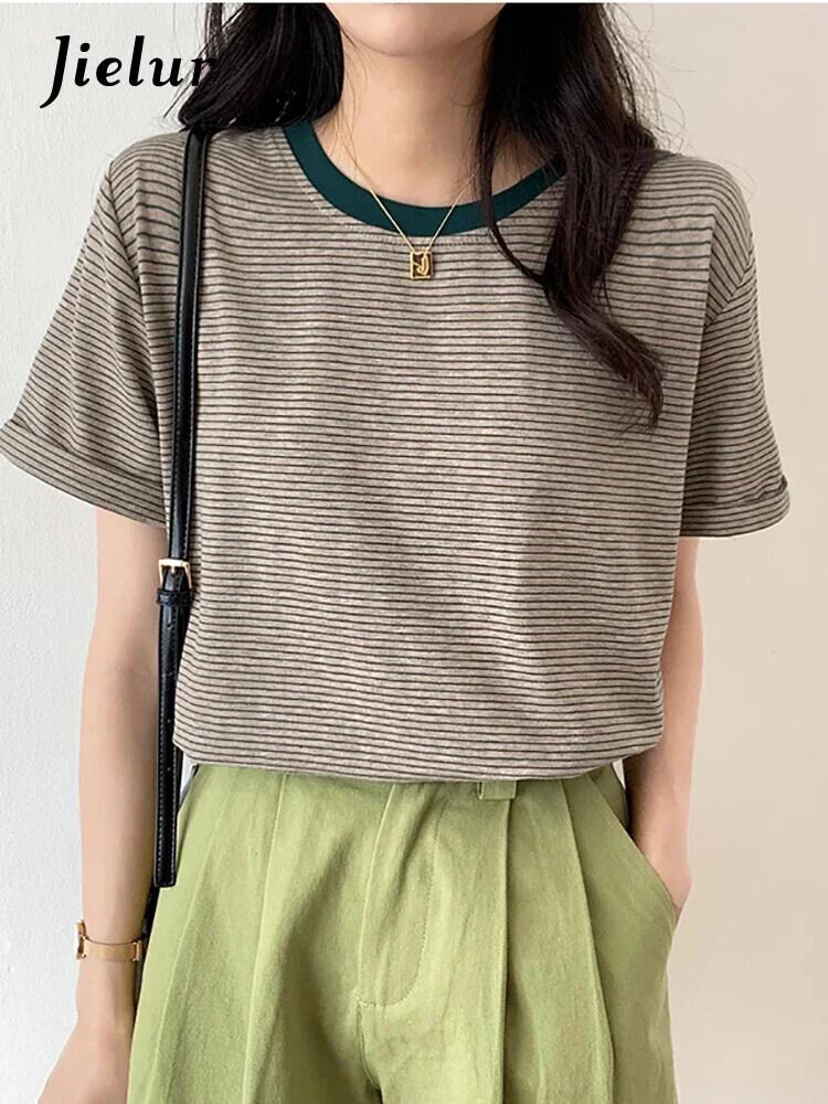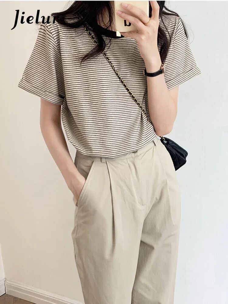送料無料 Jielur 春秋の女性原宿ストライプ Tシャツ長袖 O ネック Tシャツ Tシャツ黒トップス ロング ブラック かわいい スプリング 春物 オータム 秋物 Oネック AE12188787844021000659