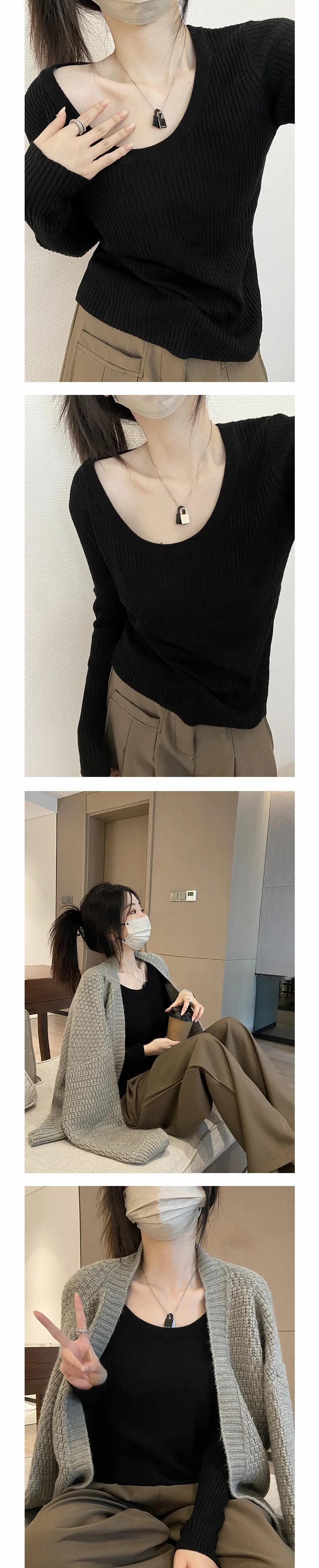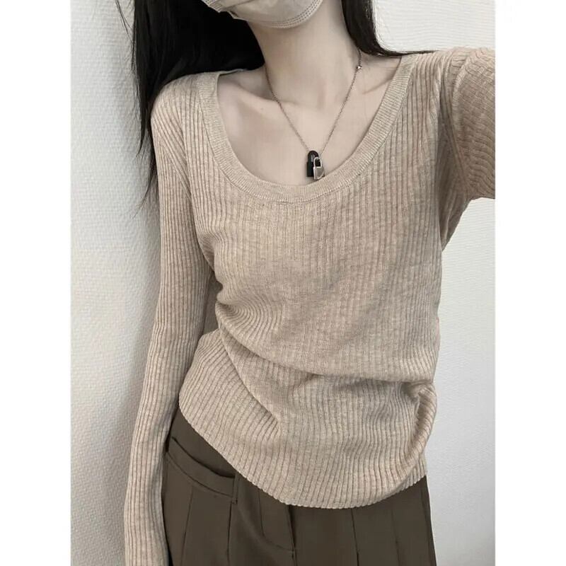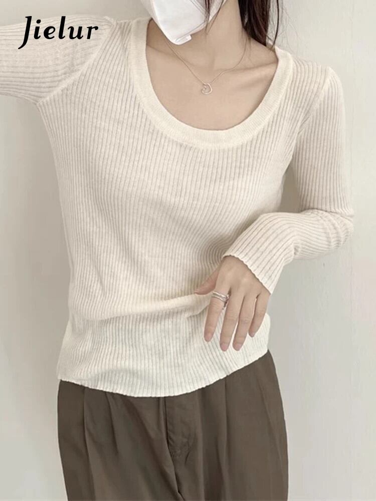 送料無料 Jielur 春無地スリムニット女性セーターシンプルなベーシックストリート女性セーター黒ベージュライトグレートップ ブラック スプリング 春物 ソリッドカラー AE1218878784409713561