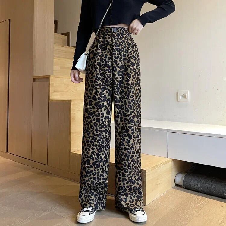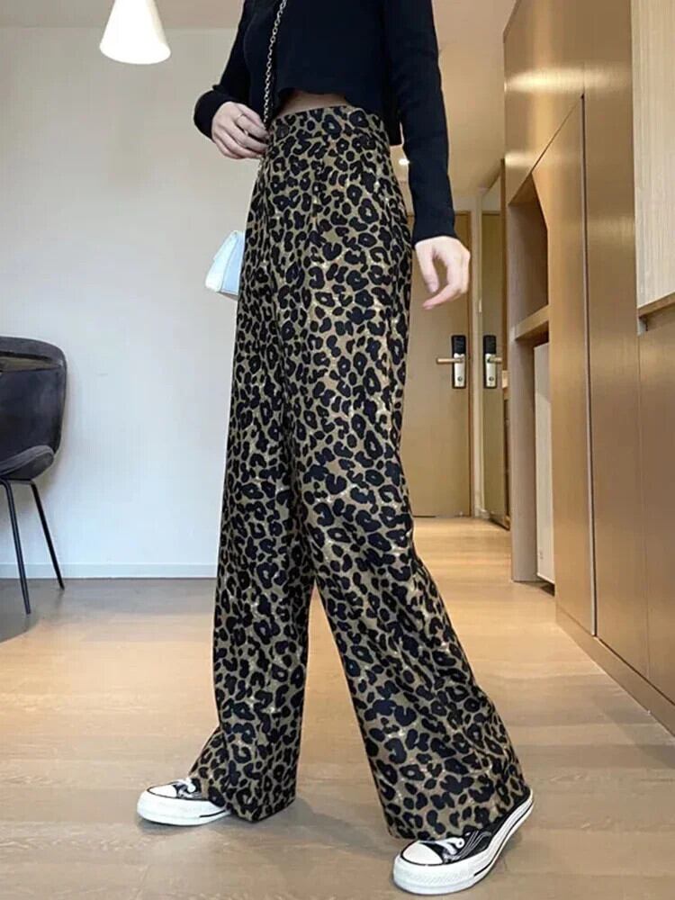 送料無料 Y2K ヒョウウエストシックリーレディースパンツヴィンテージパンツヤングストリートヒップホップワイドレッグパンツ ワイドパンツ ビンテージ AE12188787890990738227