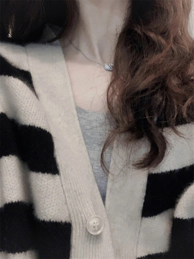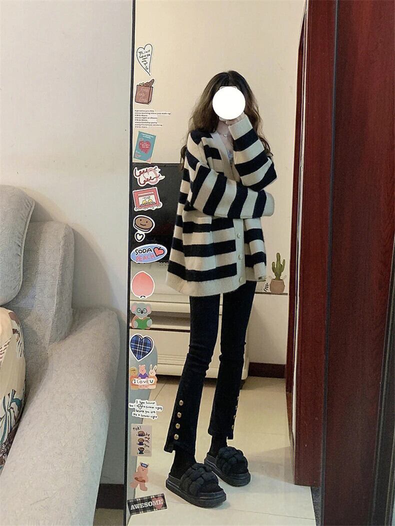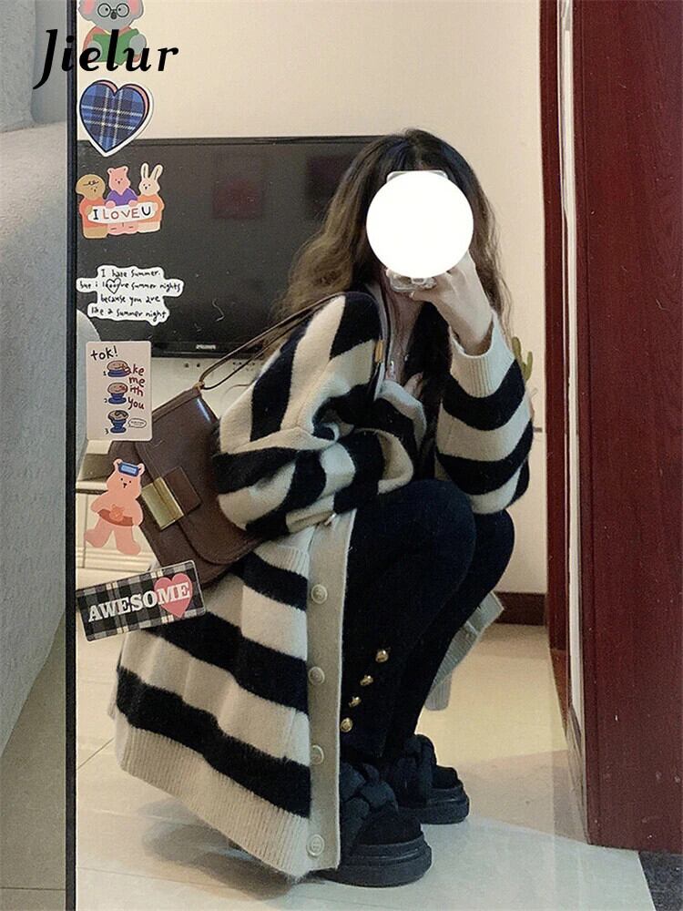 送料無料 Jielur 秋のコントラストカラースリムシックカーディガン女性ルーズカーディガンストリートベーシックニットストライプトップ オータム 秋物 AE12188787831451269596