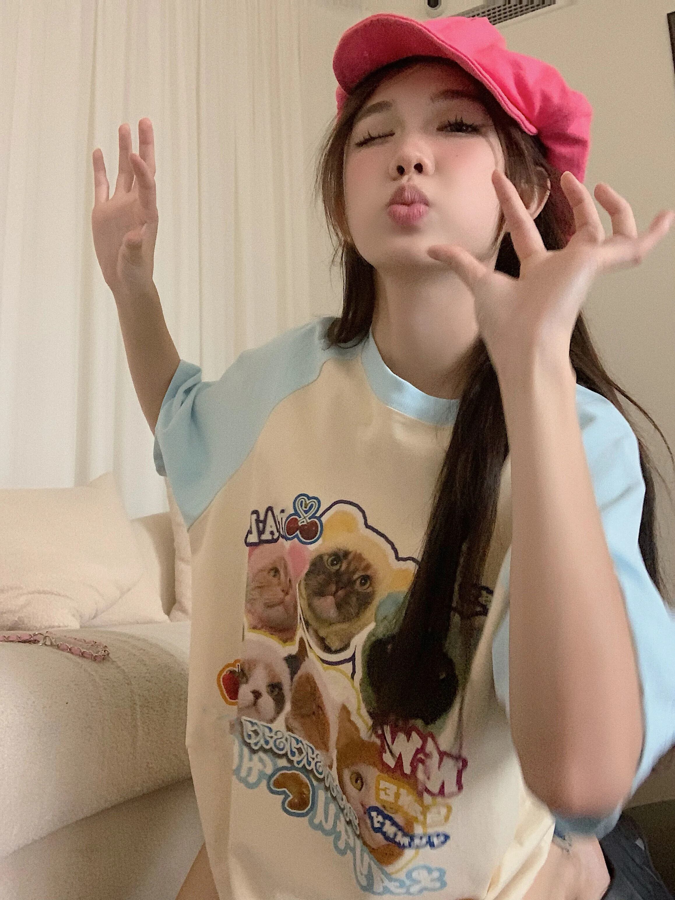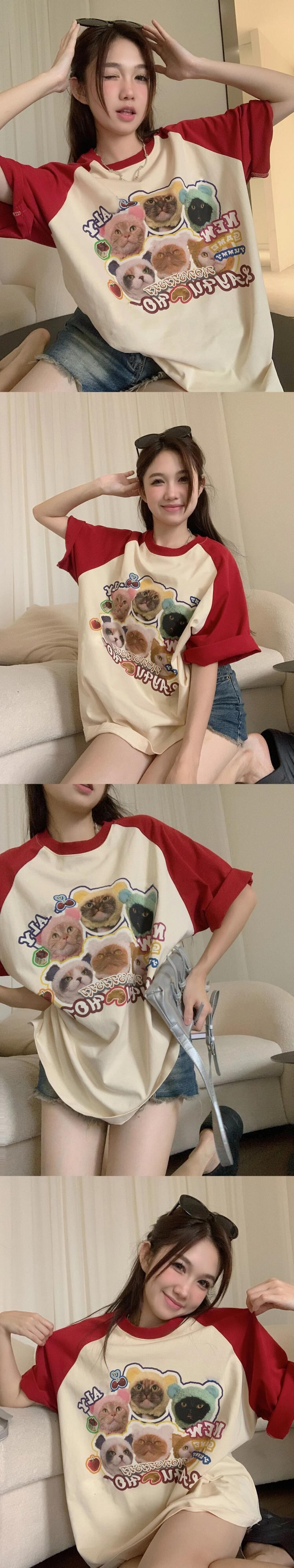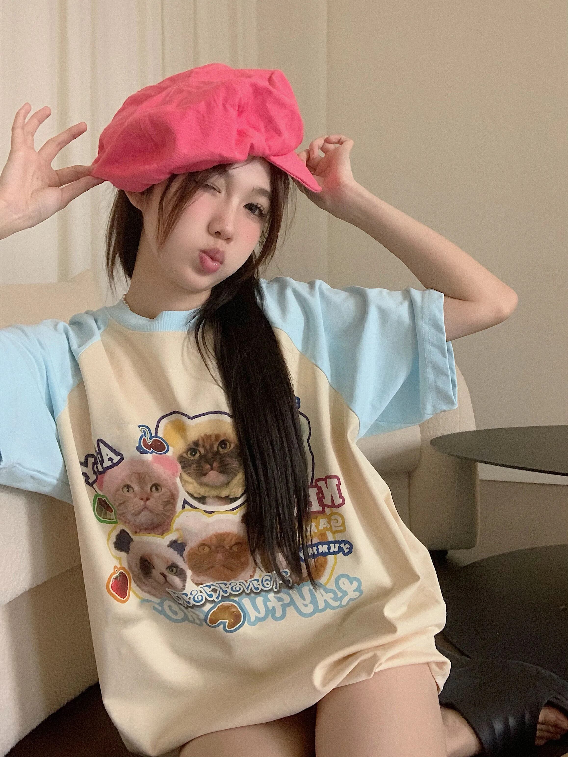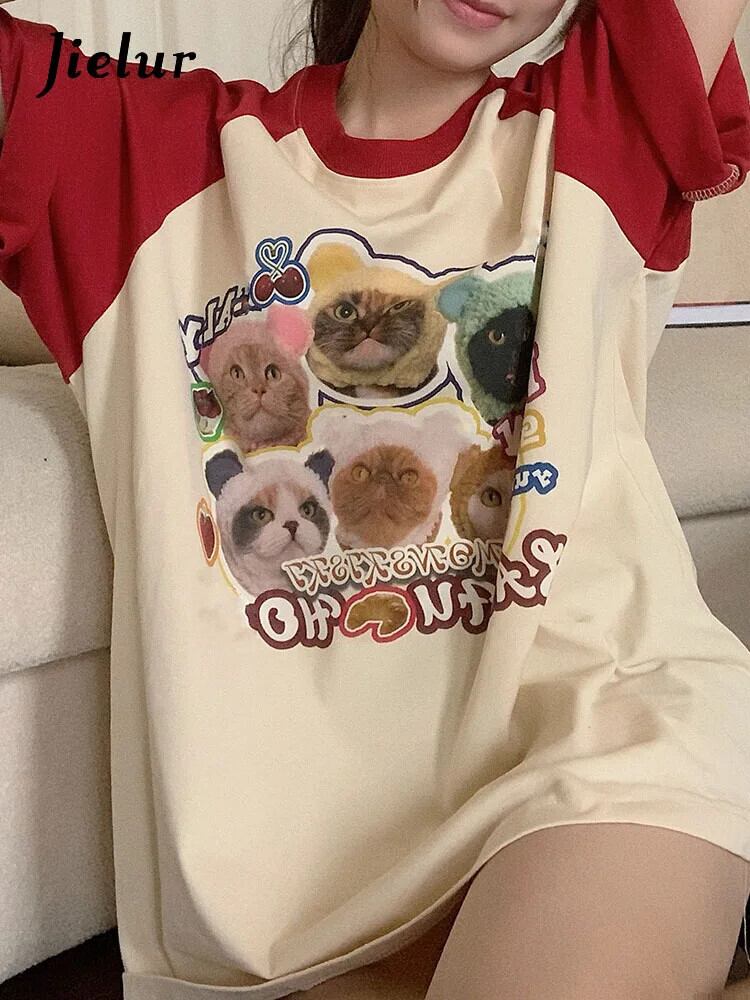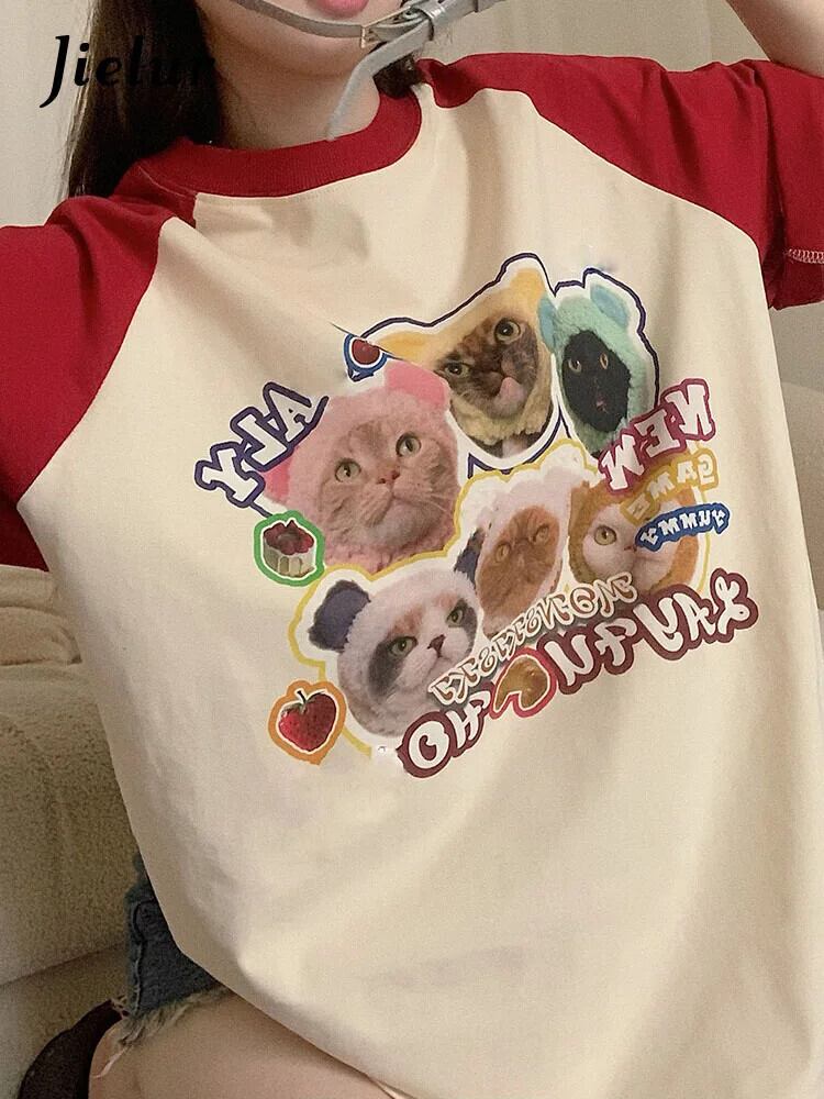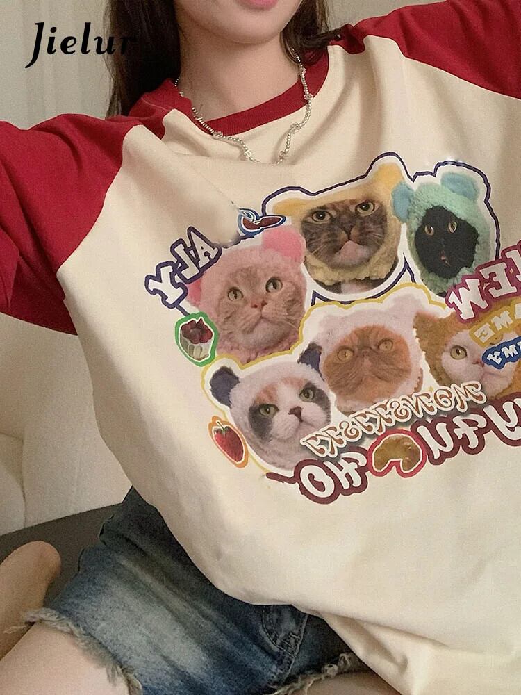 送料無料 Jielur 夏ルーズスリム Womne の Tシャツ甘い Tシャツ青赤ストリートシックな O ネックトップ女性 レッド ブルー 大人ガーリー スウィート キュート カジュアル サマー 夏物 Oネック AE1218878789031516139