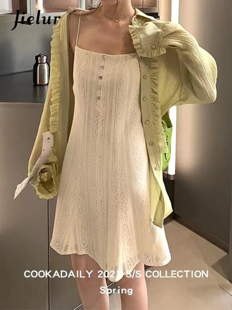 送料無料 Jielur 夏のレースのストラップレスの女性のドレス Solid Color 甘いドレス女性シックな黒のルーズノースリーブドレス ブラック 大人ガーリー スウィート キュート カジュアル サマー 夏物 AE12188787821074379716