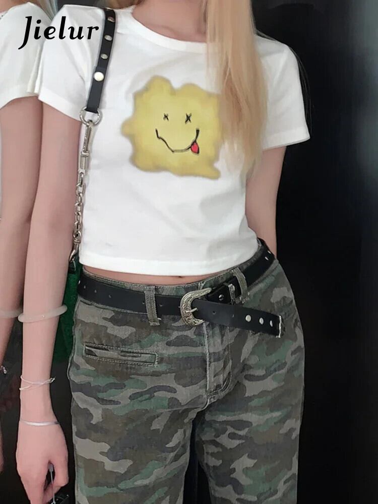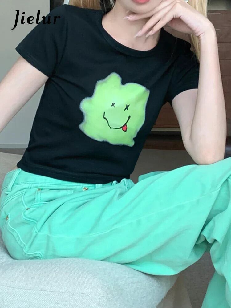 送料無料 Jielur 夏甘いセクシーなシックな女性の Tシャツルーズスリムベーシック Tシャツ白黒シンプルな女性 Tシャツ ホワイト ブラック 大人ガーリー スウィート キュート カジュアル サマー 夏物 AE12188787861656273064