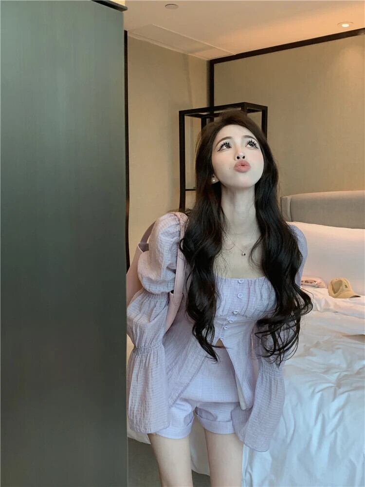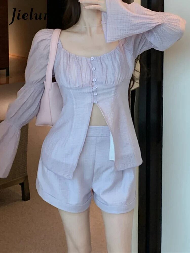 送料無料 Jielur ツーピース夏ウエスト無地女性シャツ甘いスリムシャツ女性ルーズシンプルシックなベーシックショーツ 大人ガーリー スウィート キュート カジュアル サマー 夏物 ブルマー ソリッドカラー AE12188787829612798388