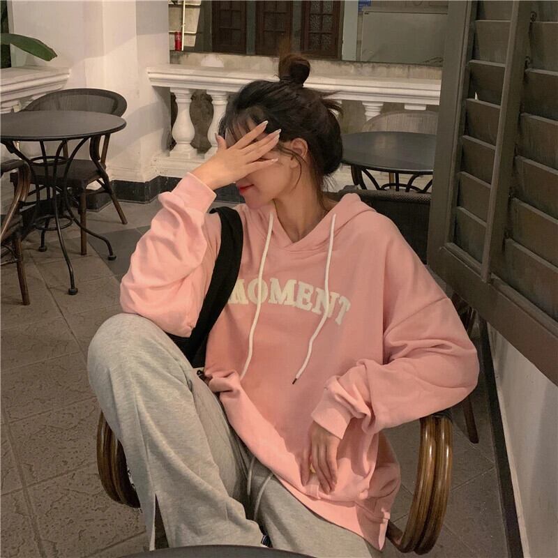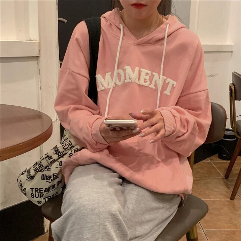 送料無料 Jielur シンプルベーシックシックパーカー女性ルーズスリムパーカー女性秋ピンク黒白ストリートトップ ホワイト ブラック オータム 秋物 AE12188787822049467088